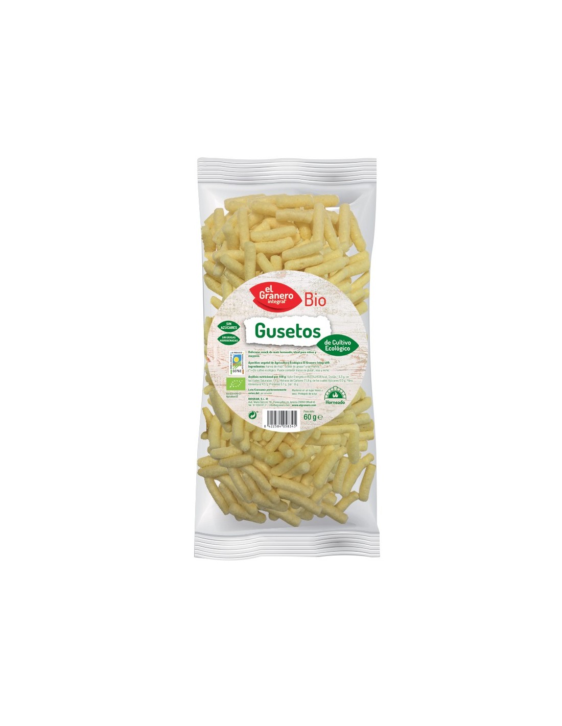 Harina de maíz*, aceite de girasol* y sal marina. Valor nutricional por 100 g: Grasas 13,3 g Saturadas 1,4 g Hidratos de carbono 71 g De los cuales azúcares 0,0 g Fibra 4,5 g Proteínas 5,1 g Sal 1,6 g (*)=De cultivo ecológico. + Puede contener trazas de gluten, soja y leche.