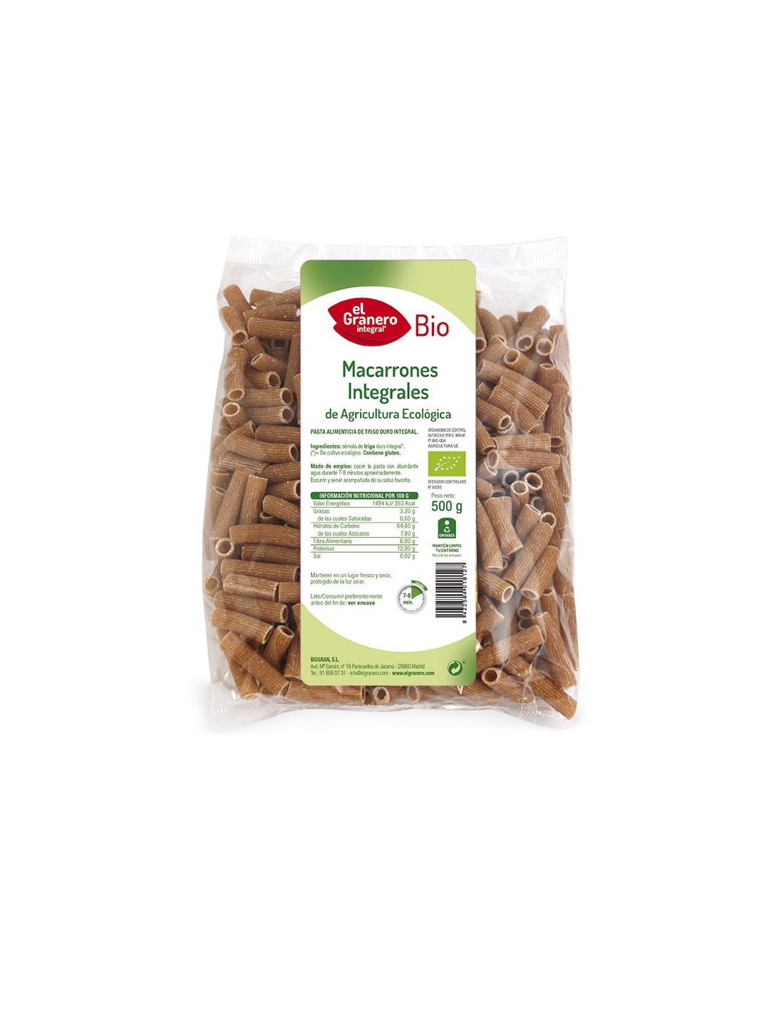 EL GRANERO INTEGRALCaracterísticas y Beneficios Exclusivos de los Macarrones Integrales Bio, 500 G de El Granero Integral