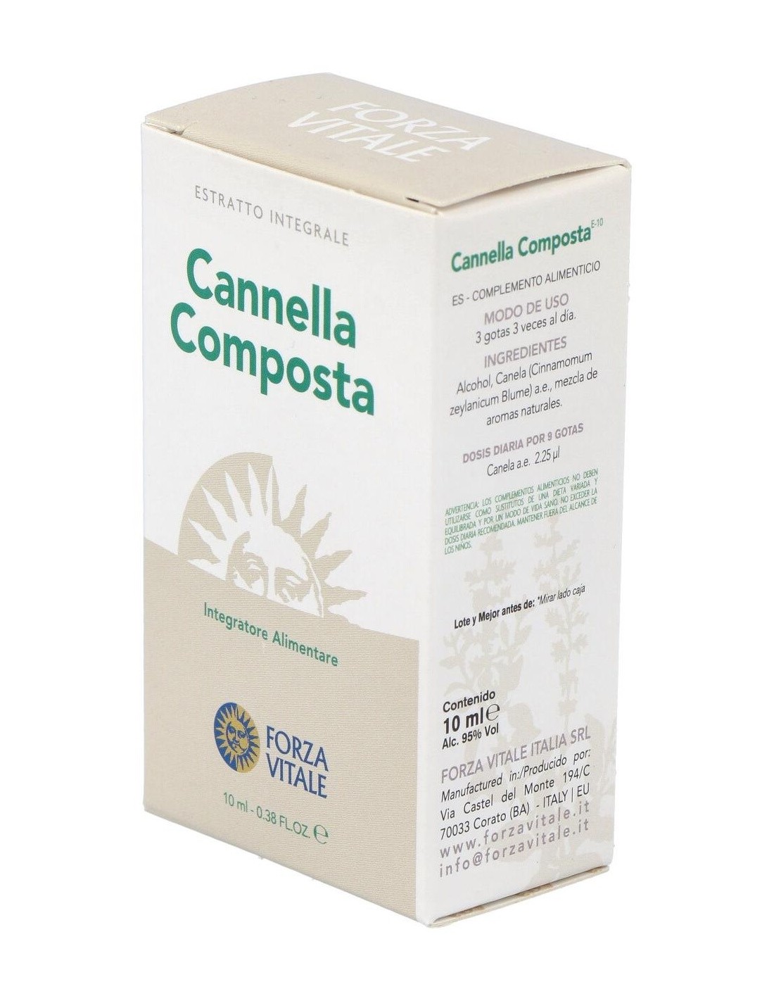 El aceite esencial de Canela está constituido por la aldéida cinnámica (más del 60%), eugenól, linalól, cario leno, acetato de cinnamila, timeno, Limónno y benzoato de benzíl. En la medicina oficial el aceite esencial está reconocido como antibacteriano, antimicótico, estimulante de las funciones digestivas y tónico general, además de carminativo y hemostático. En aromaterapia resaltan sus acciones afrodisíacas, orexigénica, refrigerante, espasmolítica, estimulante circulatoria. En el caso de la Canela Composta es fundamental hacer referencia al uso energético de la planta que tiene sabor Caliente y Dulce. Su acción anti-frío se desenvuelve a nivel del TAI YANG, en cuanto combate el Frío nocivo que ataca el IG y el TR. En caso de Vacío Frío de Rt sobresale su propensión de uso en las mujeres en caso de amenorrea.Ingredientes:Alcohol, Canela (Cinnamomum zeylanicum) a.e., mezcla de aromas naturales. Ingredientes activos por dosis diaria (9 gotas):2,25 ml de aceite esencial de canela.Modo de empleo:Tomar 3 gotas 3 veces al día vía sublingual.Presentación:Bote de 10 ml.