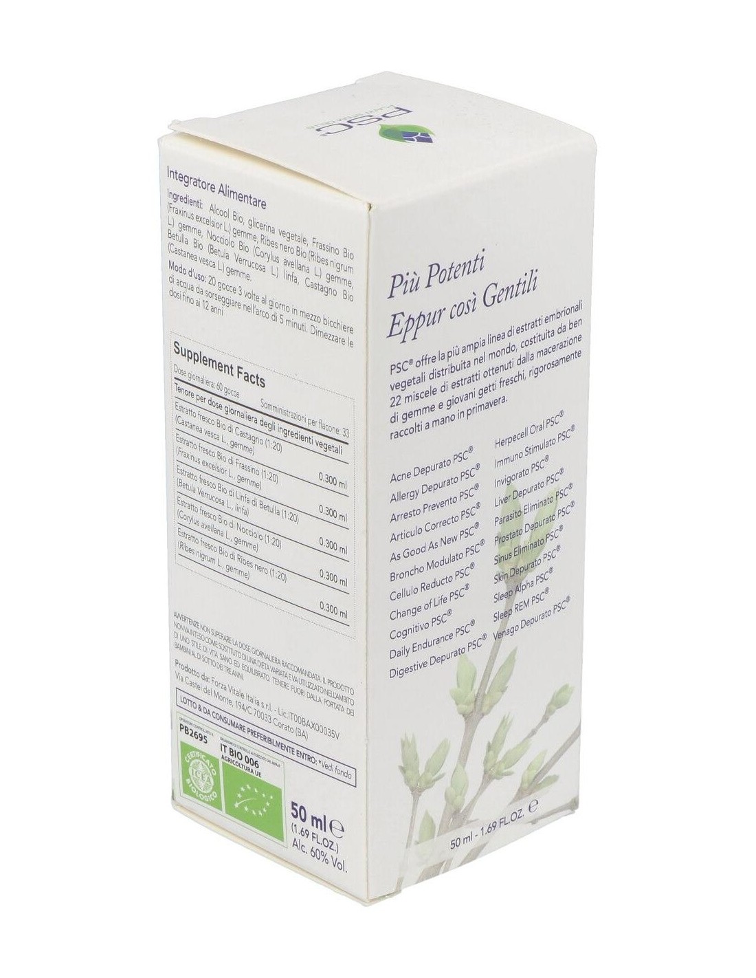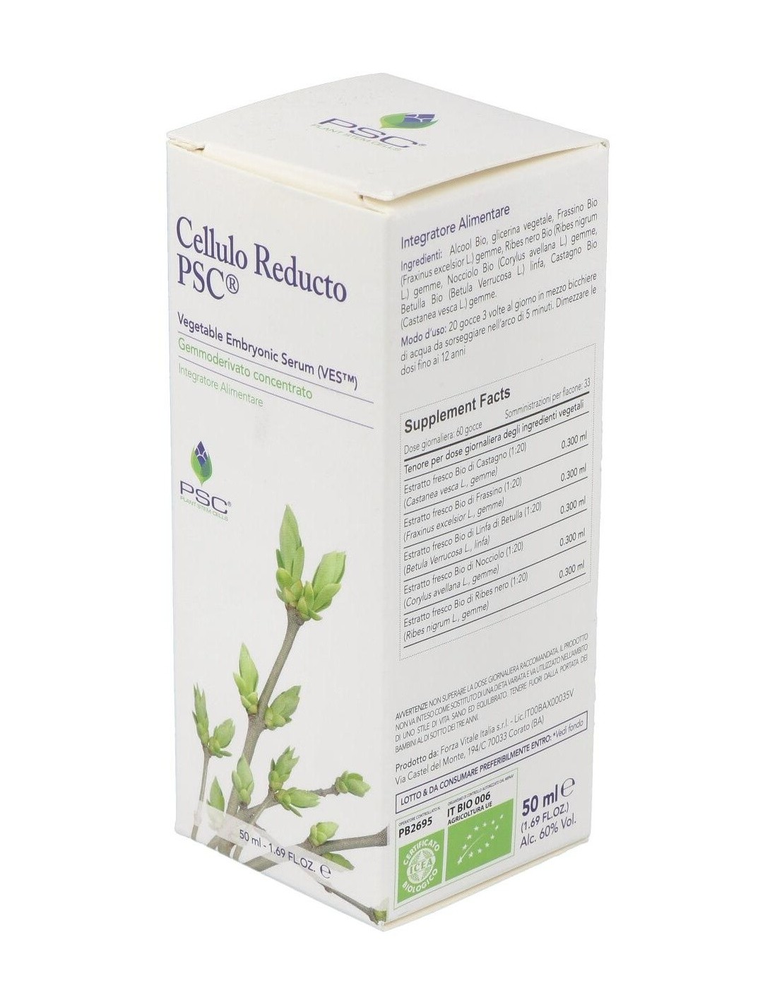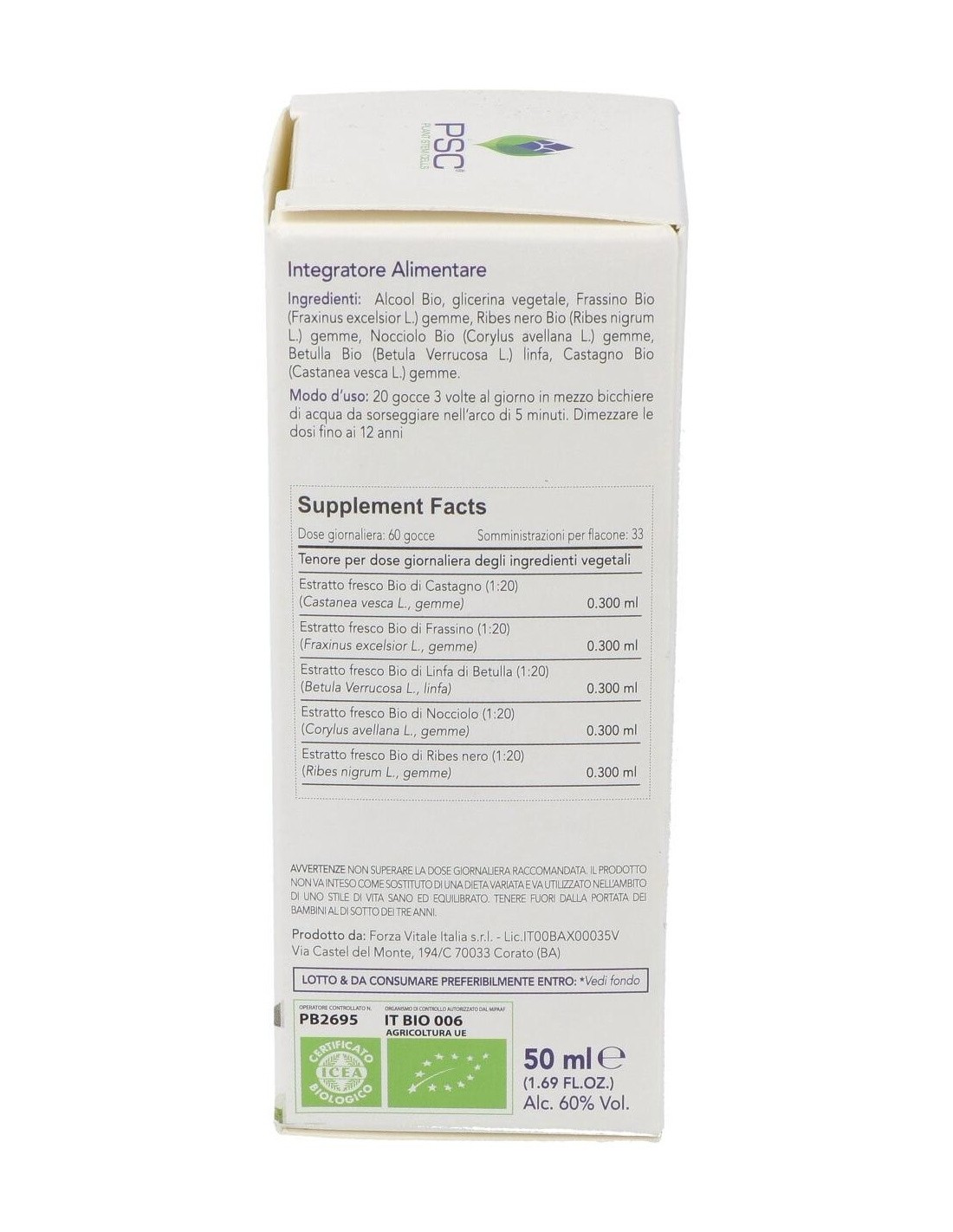 Ingredientes:Alcohol Bio, glicerol, Abedul Bio PSC (Betula pendula var. verrucosa) linfa, Grosellero negro Bio PSC (Ribes nigrum) yemas, Fresno Bio PSC (Fraxinus excelsior) yemas, Castaño Bio PSC (Castanea vesca) yemas, Avellano Bio PSC (Corylus avellana) yemas. *PSC (Plant Stem Cells) células estaminales vegetales. Ingredientes activos por dosis diaria (60 gotas):