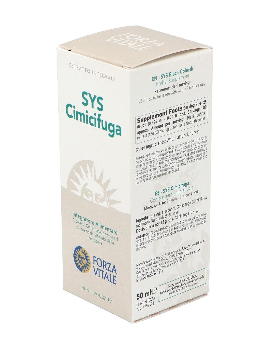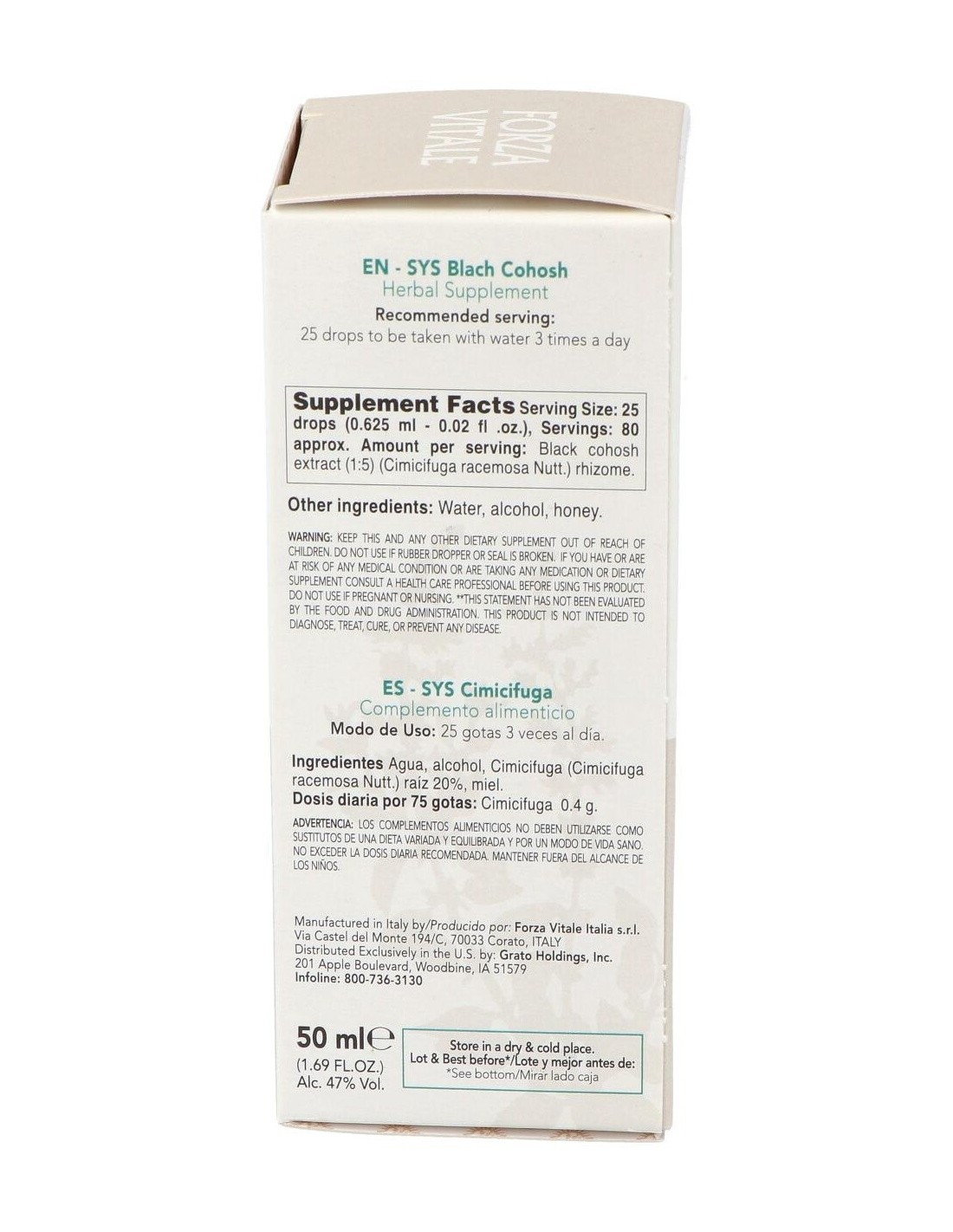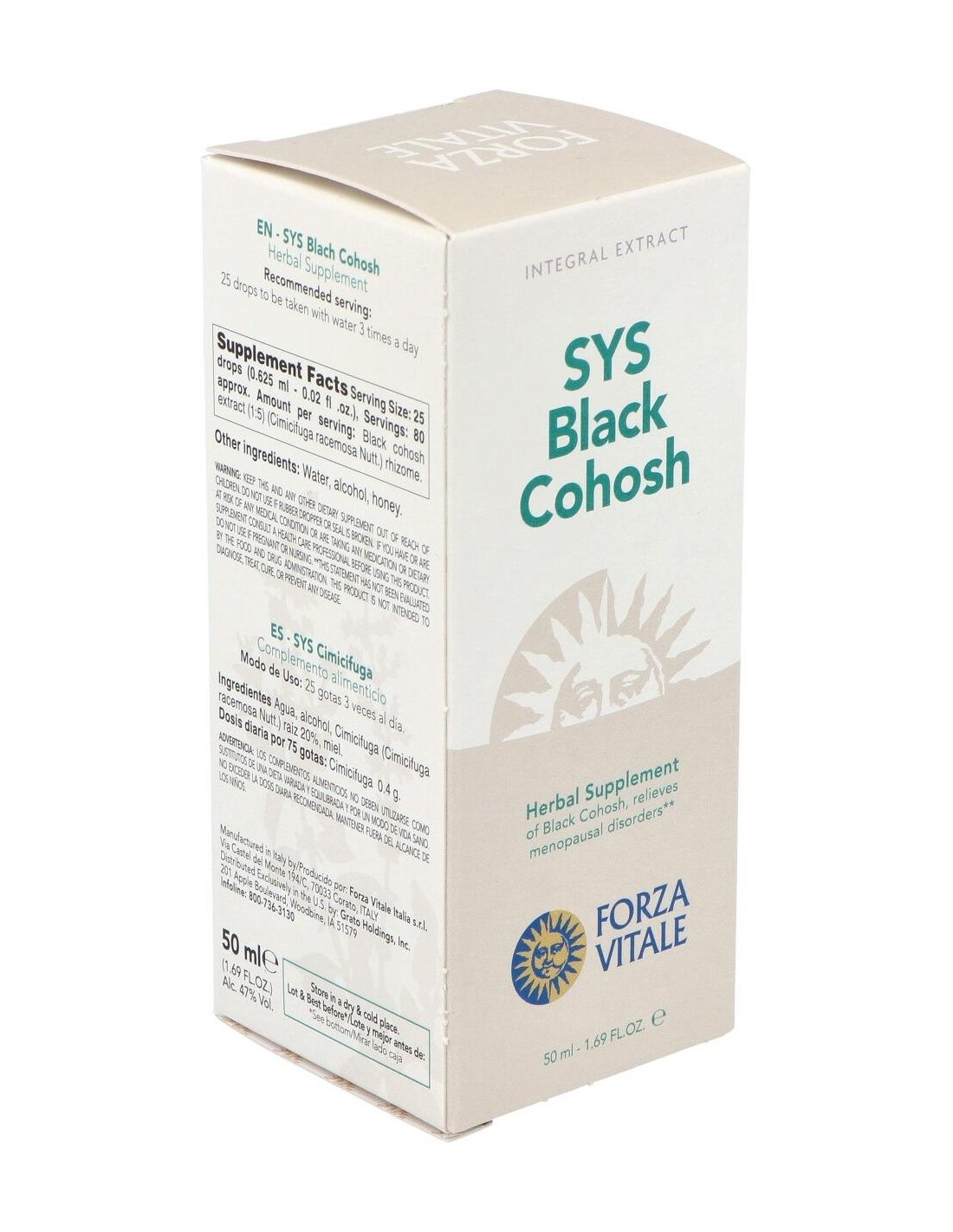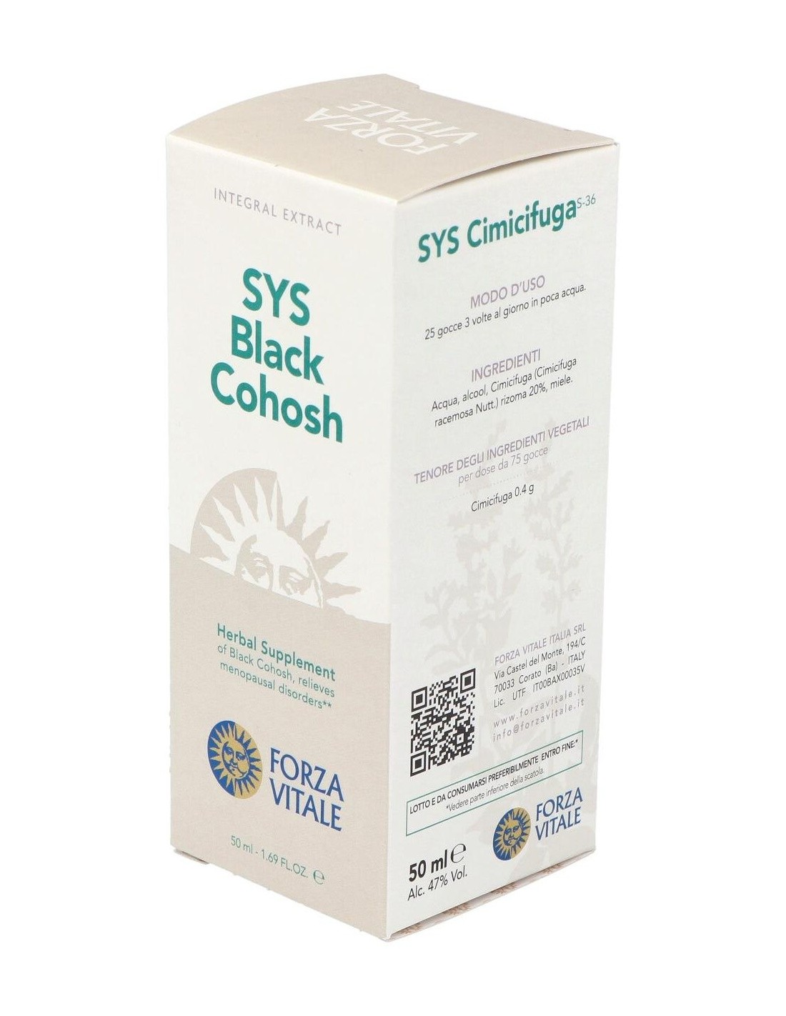 El Sys.Cimicifuga 50Ml. de Forza Vitale es un suplemento natural dirigido a personas que buscan apoyo en el bienestar femenino, formulado para contribuir al equilibrio hormonal mediante extractos de cimicífuga.