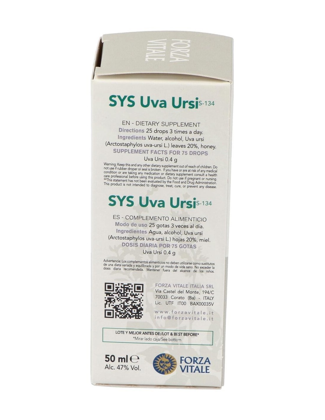 Es una planta que combate las infecciones, sobretodo a nivel del sistema urinario. Esta característica, se debe a la presencia del glucósido hidroquinónico arbutina, que es hidrolizada a nivel intestinal con laliberación de hidroquinona. Los metabólicos hidroquinónicos, llegan a la zona renal y a la vejiga, donde, en ambiente básico, se libera nuevamente hidroquinona, que tiene efecto antibacteriano. Otros constituyentes además de taninos y flavonoides, son algunos triterpenos (ácido ursolicomuvaol, etc.) que facilitan la absorción de otros principios activos, protegiendo las membranas celulares de las toxinas bacterianas; los iridoides con propiedades antiinflamatorias. Tiene propiedades diuréticas, antisépticas de las vías urinarias, astringentes, descongestionantes. De esta planta s usan las hojas. Puede ser útil como coadyuvante en las cistitis, uretritis, pielonefritis, litiasis renal, incontinencia urinaria, hipertrofia prostática con retención urinaria. Ingredientes:Agua, Alcohol, Uva ursi (Arctostaphylos uva-ursi) hojas 20%, miel. Ingredientes activos por dosis diaria (2 ml):0,4 gramos de uva-ursi. Ingredientes activos por dosis diaria (2 ml):0,4 gramos de uña de gato. Modo de empleo:Adultos: Tomar 25 gotas 3 veces al día en poca agua o vía sublingual.Niños hasta 12 años: Tomar 10 gotas 3 veces al día en poca agua o en zumo de fruta. Presentación:Frasco de 50 ml.