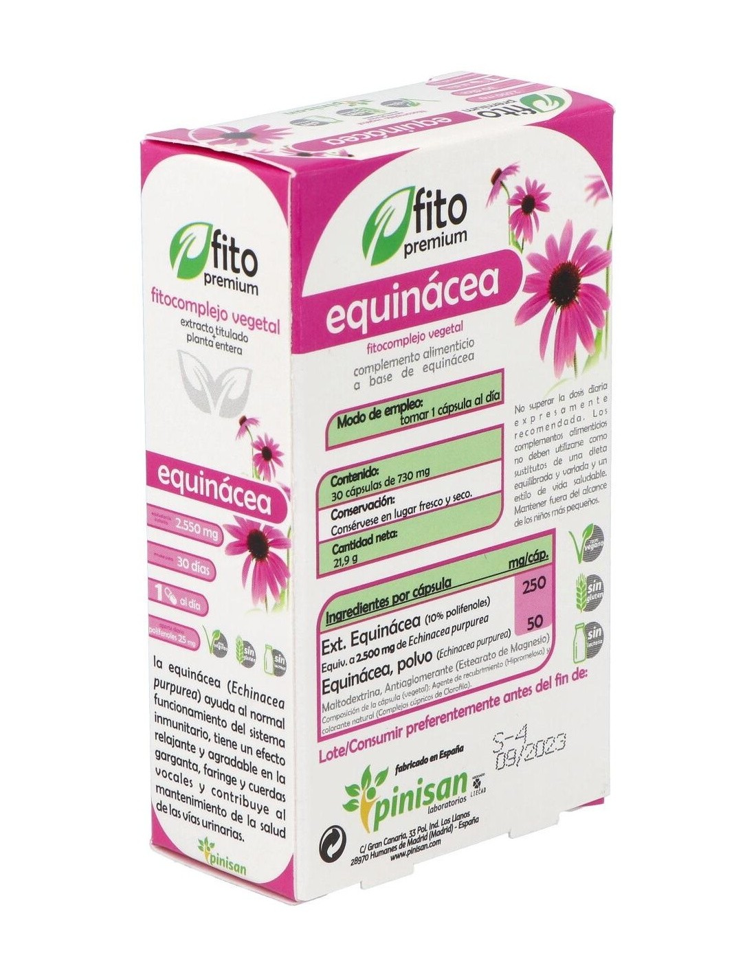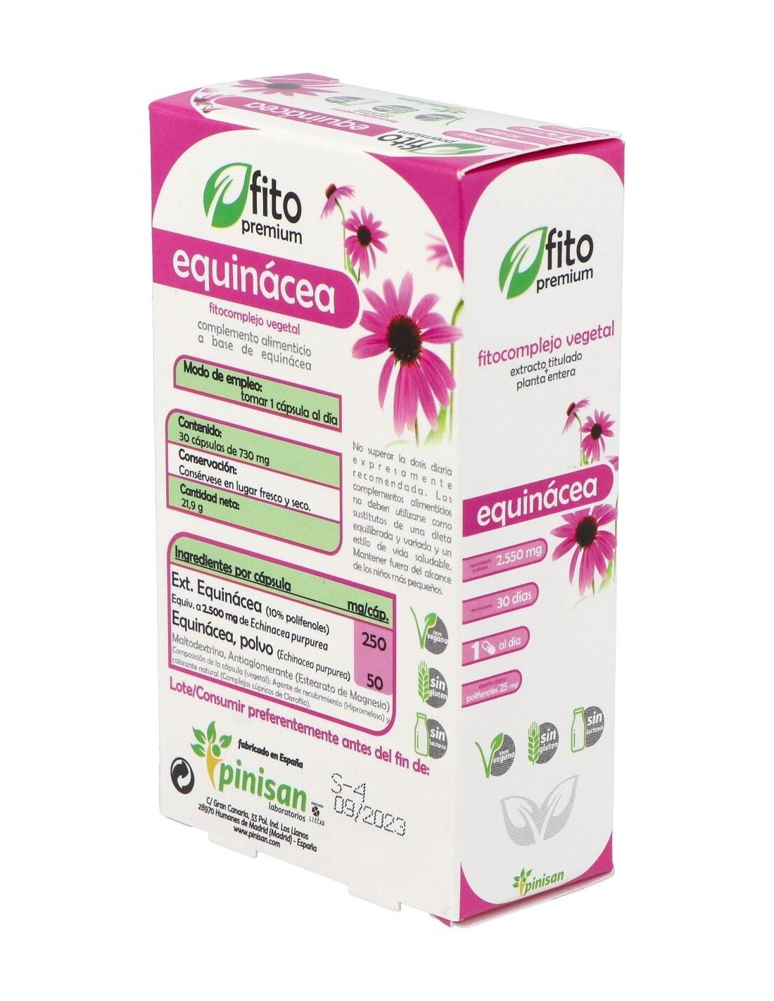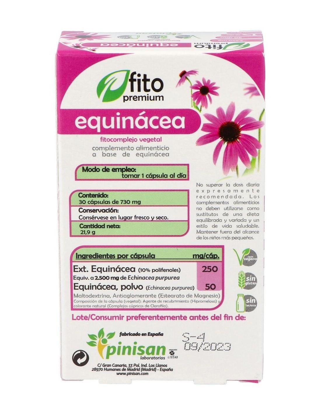 Se utiliza la raíz desecada, entera o troceada de esta planta herbácea de características flores rosas. Los polifenoles presentes en su composición (el ácido cafeico y el ácido chicórico) le otorgan sus propiedades antimicrobianas en contra de bacterias, hongos y virus que la configuran como un auténtica alternativa a los antibióticos químicos.Esta planta se considera uno de los mejores antibióticos naturales. La razón de esta propiedad se debe a su capacidad para estimular el sistema inmunitario, produciendo más glóbulos blancos. También estimula la producción de interferón, proteína que el propio organismo produce para neutralizar los virus. Existen varios estudios clínicos que demuestran la eficacia de los preparados de equinácea especialmente en la prevención y tratamiento de enfermedades infecciosas de origen vírico (principalmente, resfriado común y gripe), con la ventaja adicional de su excelente tolerancia.Se ha evaluado el efecto de los preparados de equinácea sobre la incidencia y duración del resfriado común evidenciando una disminución significativa de ambos parámetros. No debe utilizarse durante el embarazo y la lactancia, ni en caso de enfermedades autoinmunes. Tampoco conviene su uso en tratamientos prolongados.Ingredientes por cápsula: