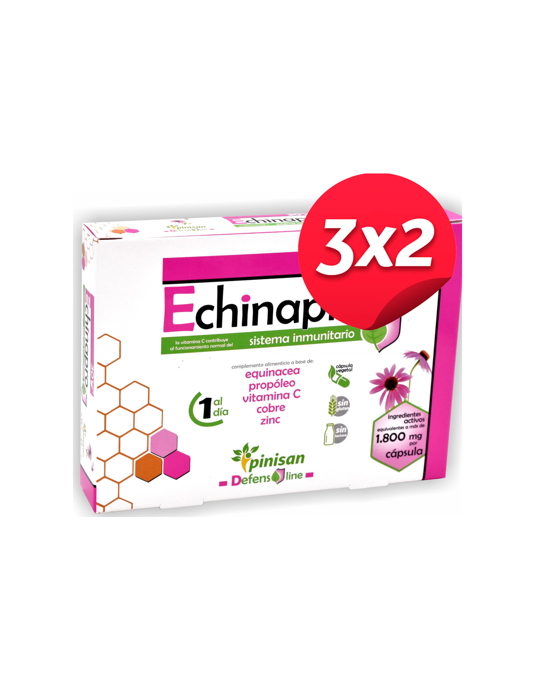 El Pack 3x2 Echinapro 30 Caps. de Pinisan es la solución perfecta para quienes buscan un impulso natural y efectivo para su sistema inmunológico. Este increíble pack ofrece tres frascos por el precio de dos, una oportunidad exclusiva que no puedes dejar pasar. Cada cápsula está formulada con ingredientes de alta calidad que trabajan de manera instantánea para fortalecer tus defensas y mejorar tu bienestar general.