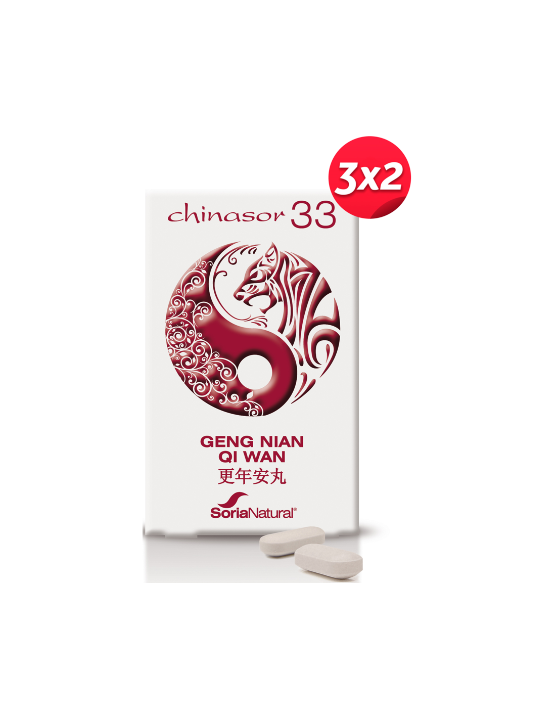 El Pack 3X2 Chinasor 33 Geng Nian Qi Wan de Soria Natural es un complemento natural para personas que buscan apoyo en su bienestar diario, formulado con ingredientes tradicionales que contribuyen al equilibrio corporal.
