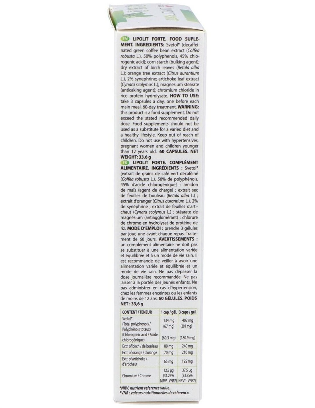 Svetol® (extracto de granos de café verde descafeinado Coffea robusta L.: 50% polifenoles, 45% ácidos clorogénicos).............134 mg