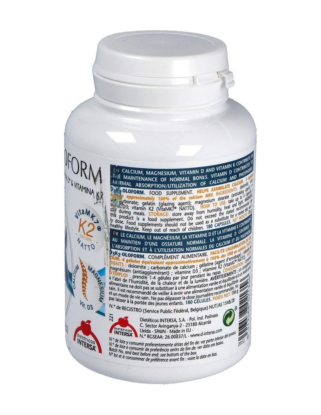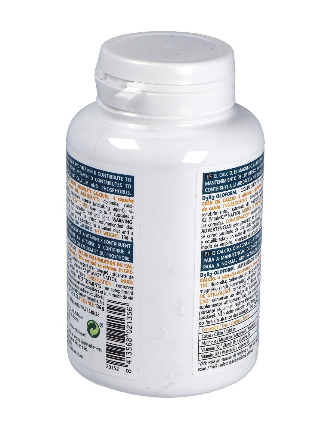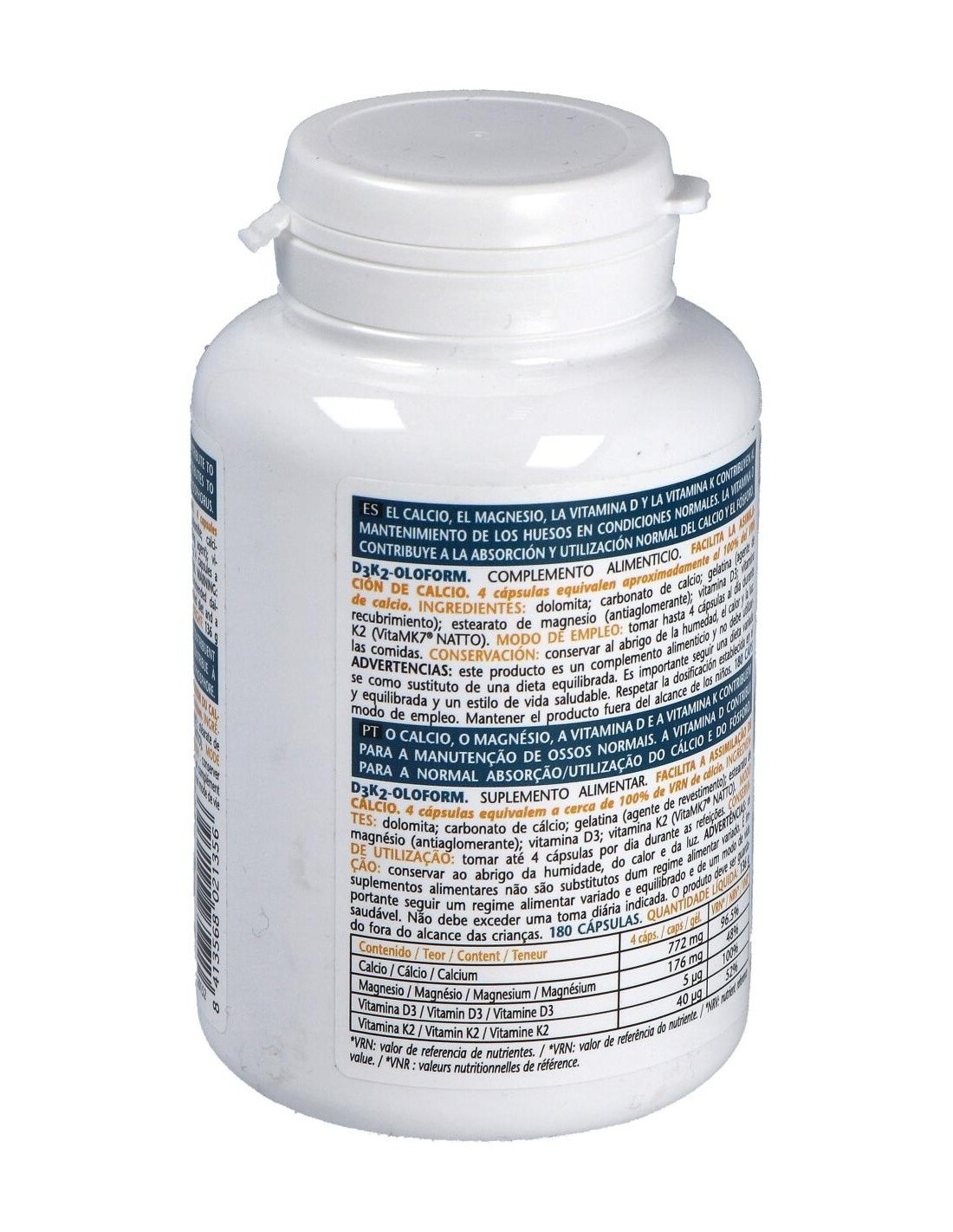 Este producto es un complemento nutricional para la corrección del déficit de calcio, por una dieta inadecuada o por aumento de la demanda (lactantes, ancianos). Ideal para descalcificación, osteoporosis, osteomalacia, dolores musculares y articulares asociados a descalcificación, hipocalcemia, déficit de vitamina D3 y déficit de vitamina K.Ingredientes: