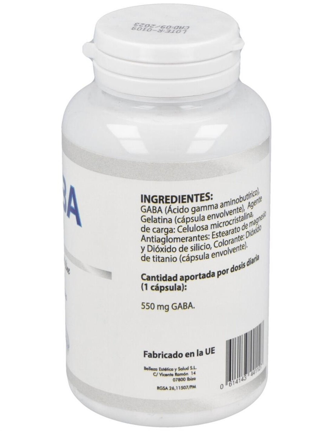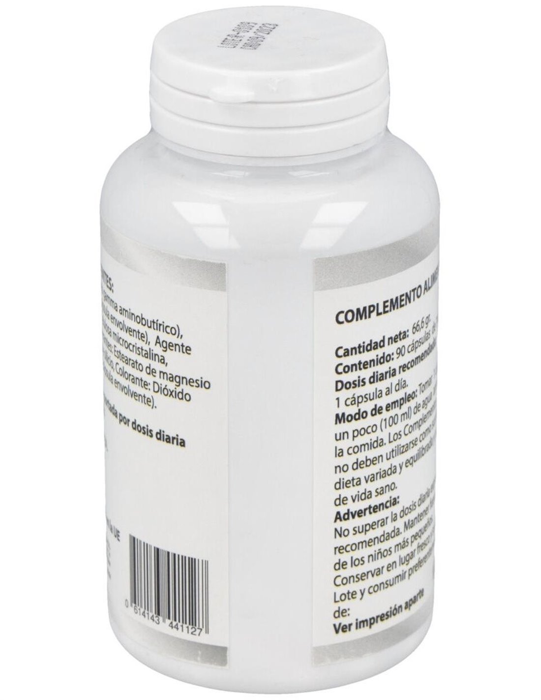 Gaba de Besibz que actúa absorbiendo el exceso de adrenalina y de otros subproductos tóxicos asociados al exceso de estrés, induciendo un profundo estado de relajación y bienestar. Indicado en estados de ansiedad, insomnio, nerviosismo, estrés, falta de foco o concentración, crisis de pánico o ansiedad.Composición activa por cápsula:550 mg de GABA (Ácido gamma aminobutírico).Ingredientes:GABA (Ácido gamma aminobutírico), Gelatina (cápsula envolvente), Agente de carga: Celulosa microcristalina, Antiaglomerantes: Estearato de magnesio y Dióxido de silicio, Colorante: Dióxido de titanio (cápsula envolvente).Modo de empleo:Tomar de 1 cápsula al dia con un poco de agua antes de la comida.Presentación:Envase de 90 cápsulas.