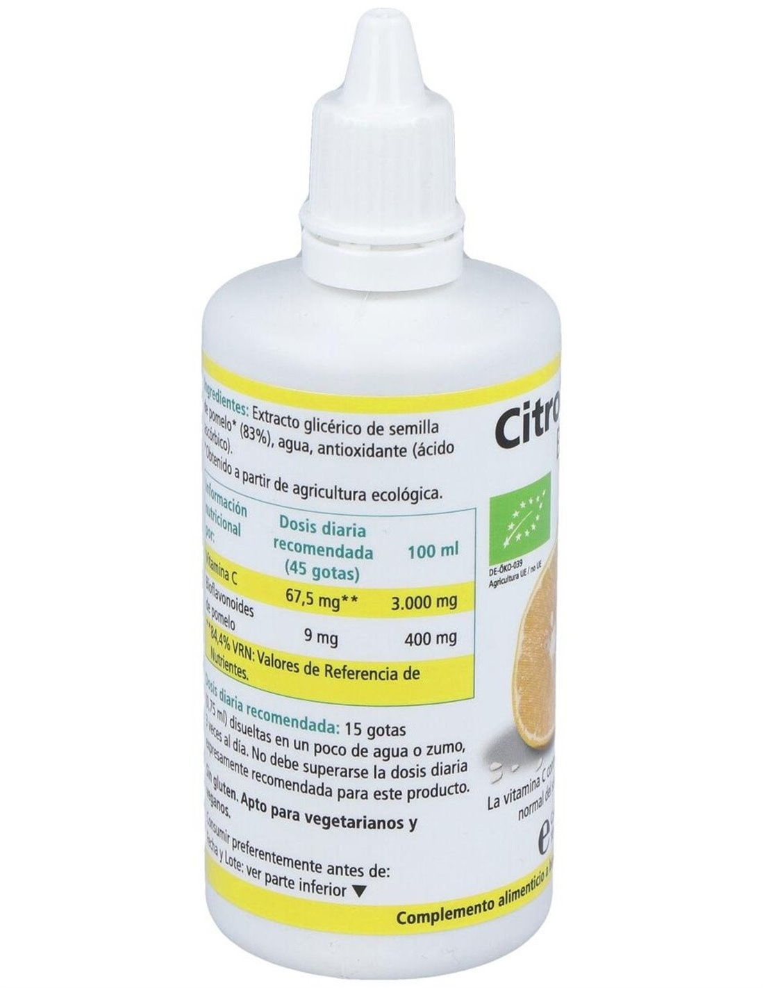 Citrobiotic lleva la identificación Bio ya que el extracto de semilla de pomelo ha sido obtenido de cultivo ecológico.Composición por 45 gotas: