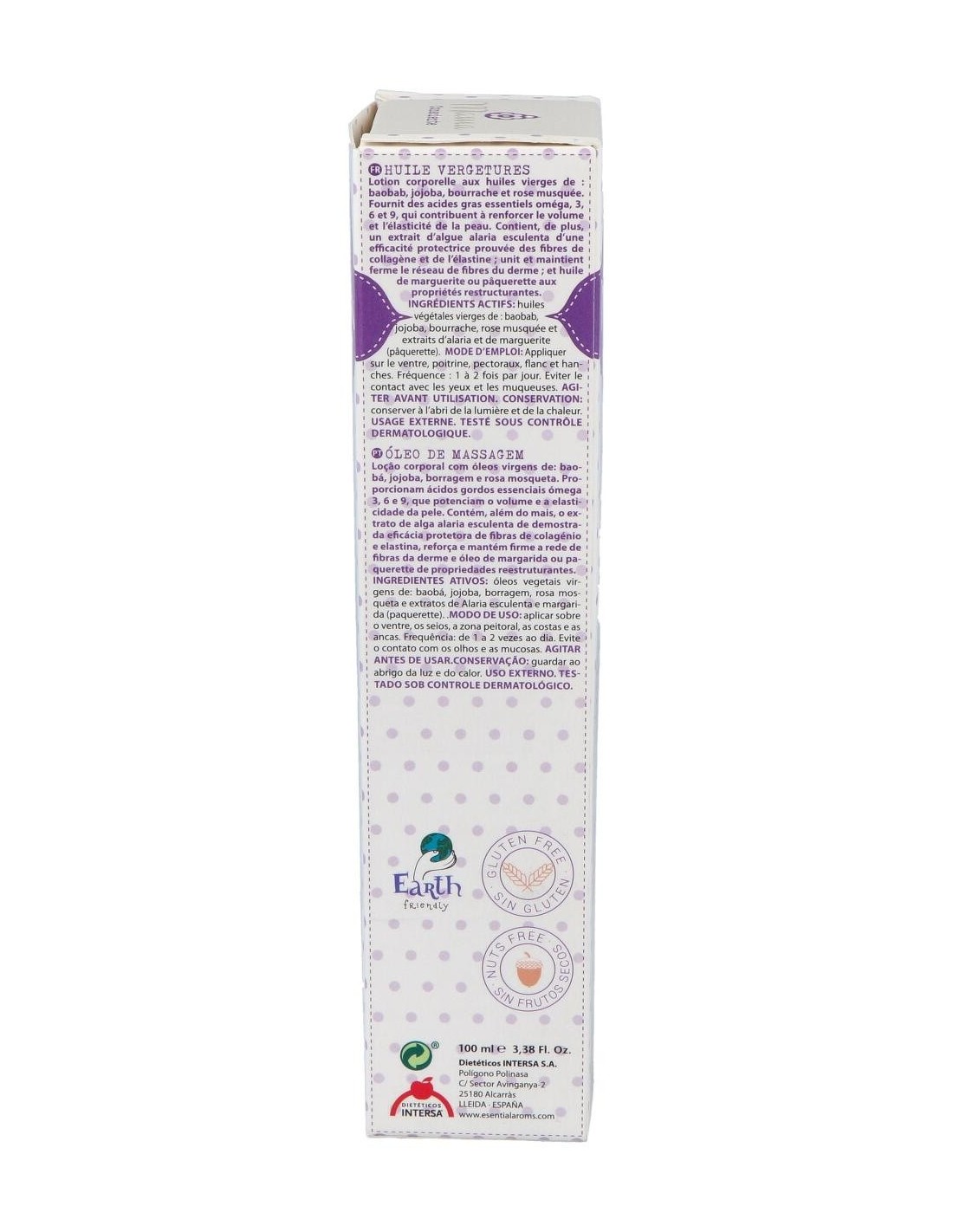 Loción corporal formulada con aceites vírgenes que proporcionan ácidos grasos esenciales omega,3,6,y 9, que contribuyen a potenciar el volumen y la elasticidad de la piel. Recomendado durante el embarazo, para maximizar la elasticidad del vientre y senos.