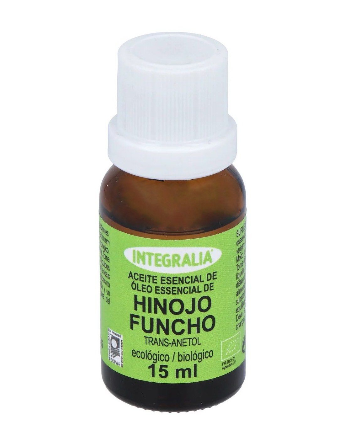 Apoya suavemente el apetito, la digestión y la eliminación. Las semillas de hinojo, de gusto anisado característico, están también indicadas en la lactancia pues apoyan la secreción láctea y calman las flatulencias. Ingredientes:Aceite Esencial de Hinojo* 100% (Foeniculum Vulgare Dulce , Mill.). (*) Procedente de agricultura ecológica.Quimiotipo: Trans-Anetol.Modo de empleo:Tomar de 1 a 3 gotas siempre diluido en infusiones, bebidas, zumos u otros alimentosPresentación:Envase de 15 ml.Recomendaciones y advertencias:No ingerir directamente.