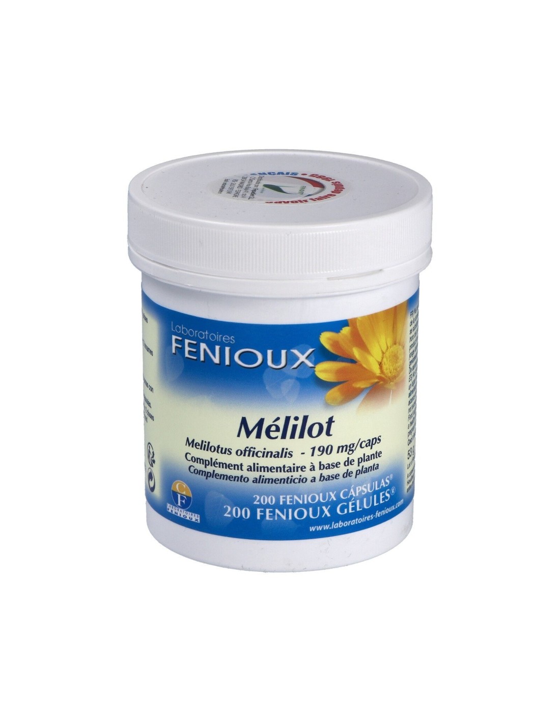 Ingredientes activos por cápsula:190 mg de meliloto.Modo de empleo:Tomar de 3 a 6 cápsulas al día.Presentación:Bote de 200 cápsulas.