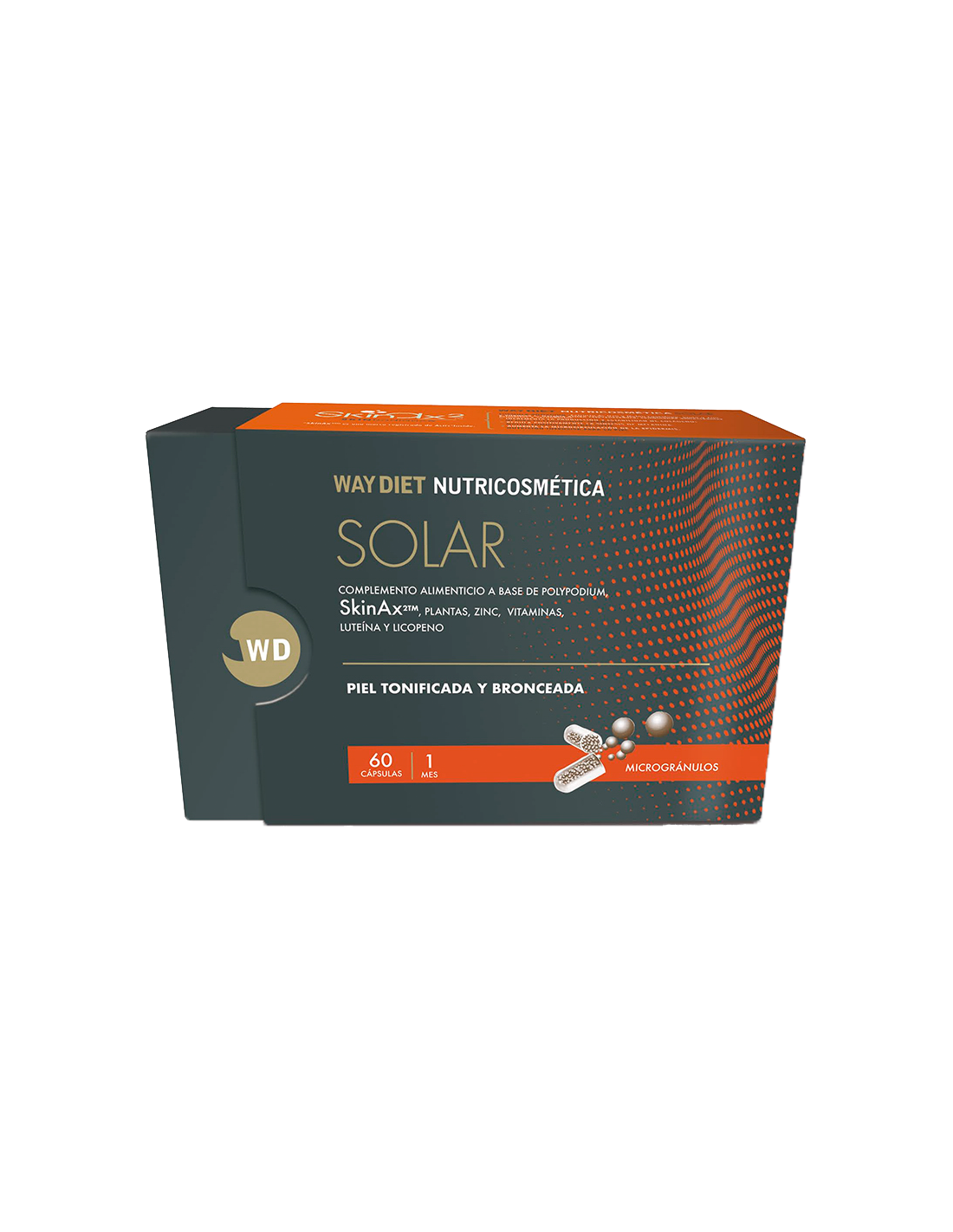 El componente principal de WAY DIET SOLAR es el extracto de un helecho tropical denominado Polypodium leucotomos, especialmente rico en polifenoles y con una gran acción antioxidante. Varios estudios han mostrado evidencias de la gran acción protectora del polipodium ante los agresivos rayos UVA. Protege frente a la radiación solar mediante la activación de los mecanismos de defensa naturales de la piel y frena su envejecimiento prematuro al actuar contra los radicales libres.