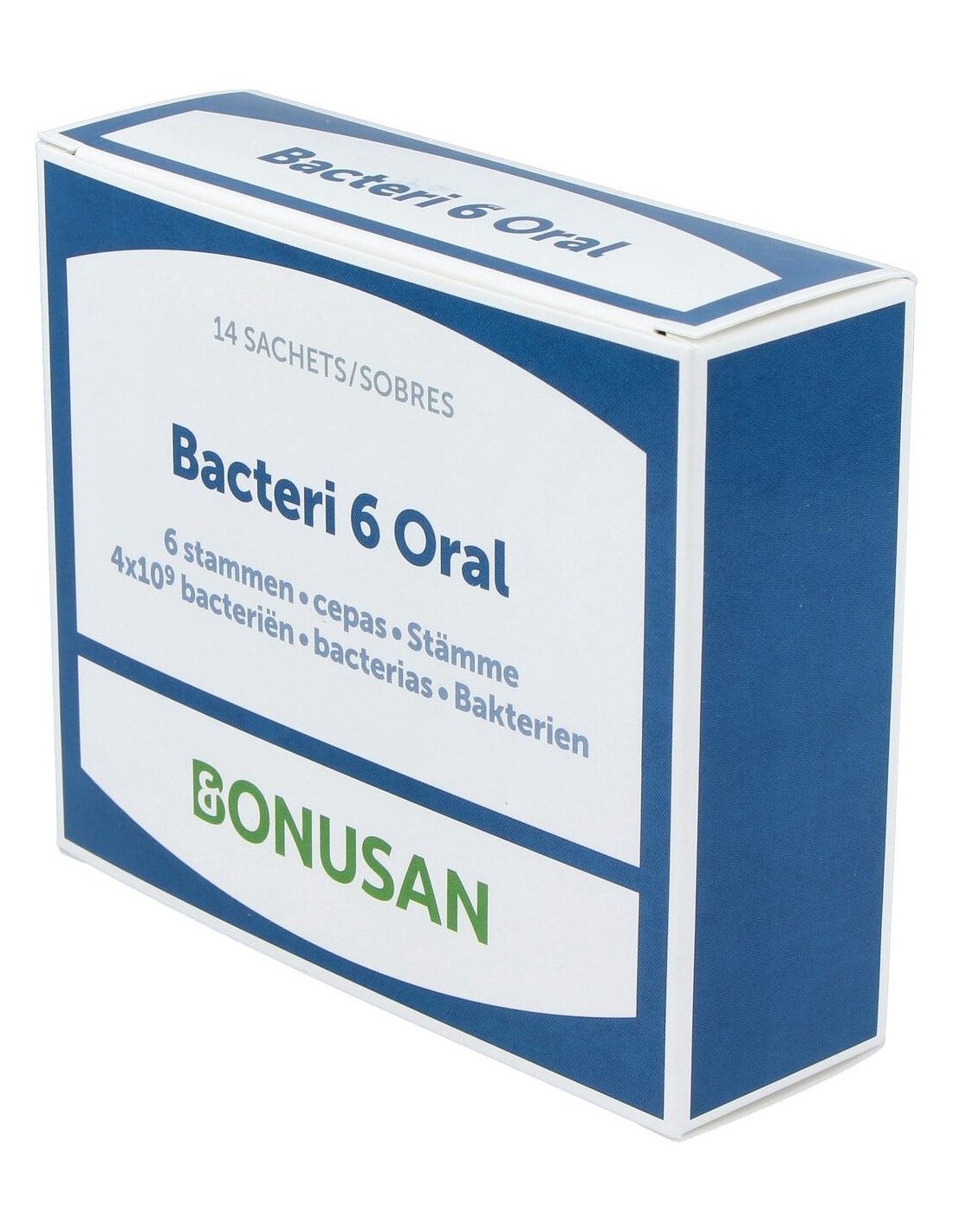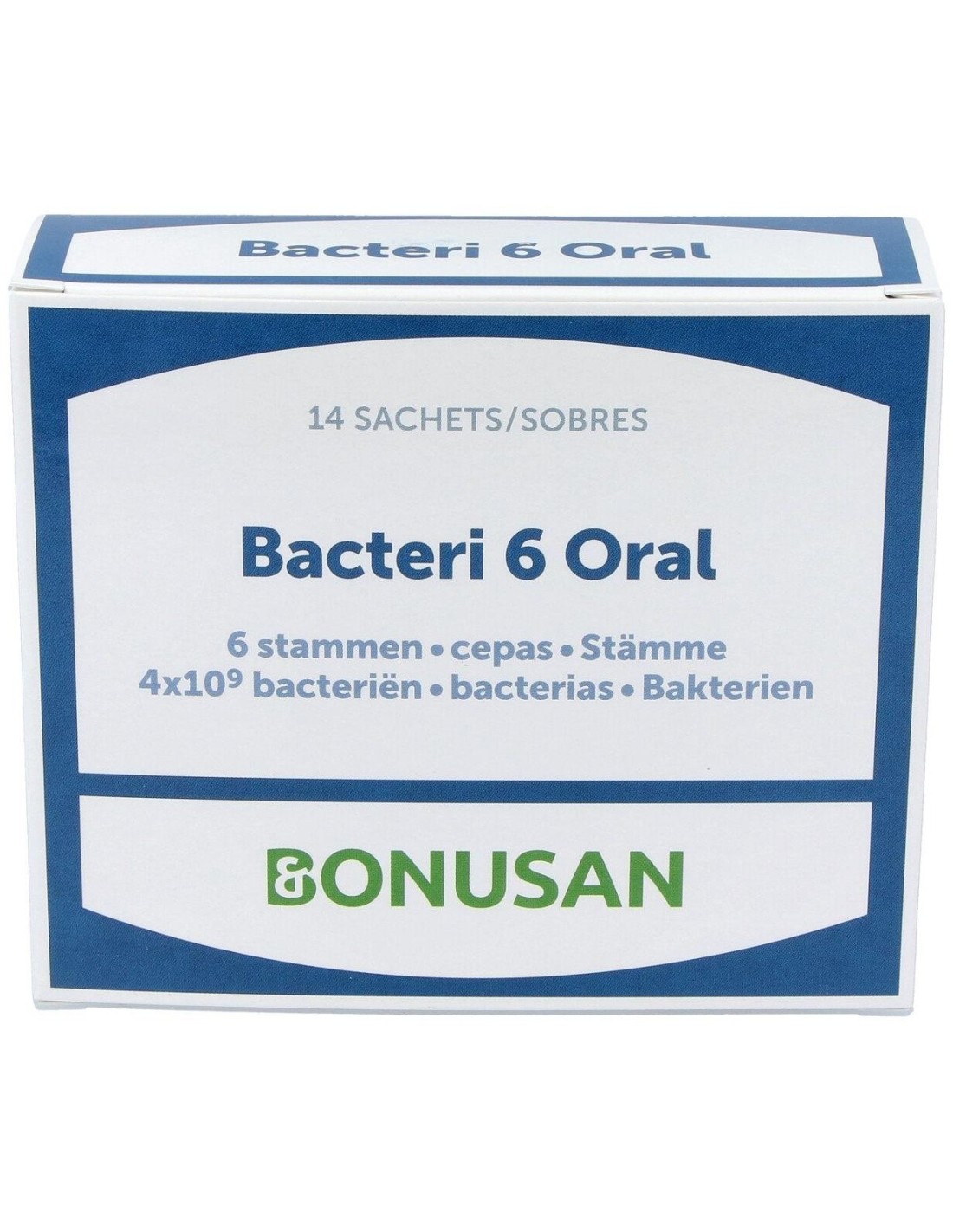 La boca contiene al menos setecientas cepas bacterianas distintas. Bacteri 6 Oral es un suplemento con bacterias para uso oral. Este producto aporta una variada mezcla de seis cepas bacterianas especialmente seleccionadas que reviven de inmediato al usarlo. Bacteri 6 Oral de Bonusan se utiliza durante dos semanas para completar las poblaciones de bacterias que están presentes por naturaleza en la boca.Bacteri 6 Oral contiene 6 lactobacilos especialmente seleccionados. Se activan cuando te enjuagas la boca con ellos. Una vez los bebes, viajan hacia el intestino.Es muy fácil de usar: disuelva Bacteri 6 Oral en agua, enjuague su boca durante unos minutos y luego tráguelo. También puede tomar pequeños sorbos, retener Bacteri 6 Oral en su boca durante un tiempo y luego tragarlo, repitiendo a continuación el proceso. Cuanto mayor sea el tiempo que Bacteri 6 Oral esté en contacto con su boca, mejor. Es un hábito muy saludable para realizar antes de irse a dormir!Garantizamos que cada sobre contiene 4 billones de bacterias viables. Los sobres protegen el contenido de la humedad, aire y luz mejor que otro tipo de envases. Todos los lactobacilos están incluidos en la lista de la EFSA, que garantiza el uso seguro de micro-organismos en nuestros alimentos. Composición activa por sobre:4 x 109 UFC mezcla de cepas bacterianas: Lb. casei BGP93, Lb. fermentum PBS073, Lb. paracasei 101/37, Lb. plantarum 14D, Lb. rhamnosus LR1, Lb. salivarius SP2.Ingredientes:Maltodextrina, mezcla de cepas bacterianas. Modo de empleo:Se recomienda mezclar el contenido del sobre en un vaso de agua y remover brevemente. Durante 2 semanas, enjuague su boca con la mezcla (ya removida) durante unos dos minutos después de cada comida y tragar. Mantenga la mezcla fuera del frigorífico. No sobrepasar la dosis diaria recomendada. Presentación:Envase de 14 sobres.Recomendaciones y advertencias:No contiene Colorantes, aromatizantes ni fragancias sintéticas.
