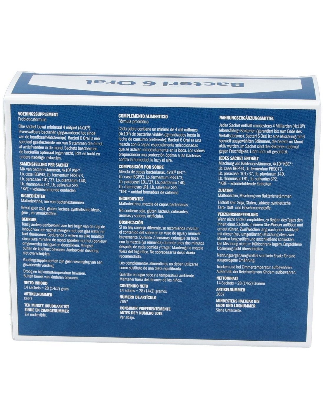 La boca contiene al menos setecientas cepas bacterianas distintas. Bacteri 6 Oral es un suplemento con bacterias para uso oral. Este producto aporta u