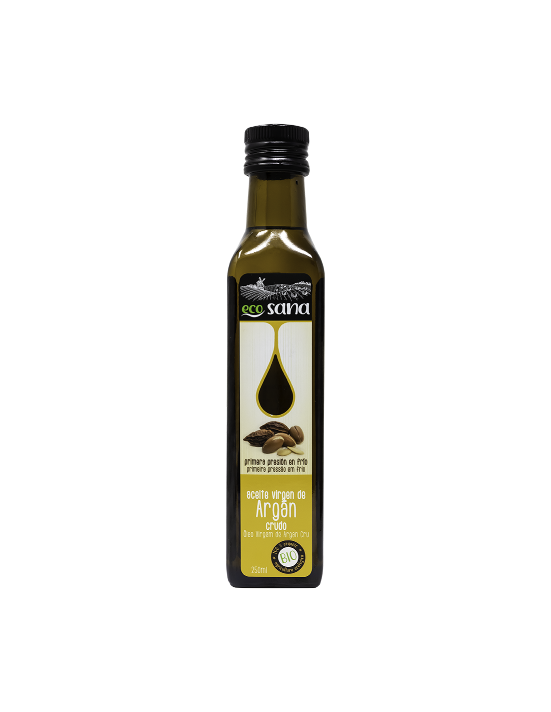 El Aceite Virgen de Argán de Ecosana procedente de agricultura ecológica, es obtenida únicamente por procesos mecánicos y nunca utilizando altas temperaturas, para conservar todas sus propiedades.Presenta un sabor tostado e intenso, que puede recordarnos al sabor de la avellana. Por ello suele utilizarse en platos crudos, para evitar la pérdida de aroma y propiedades por el efecto del calor.Ingredientes:Aceite Virgen de Argán* de primera presión en frío. (*) Procedente de agricultura ecológica.Valor nutricional por 100 ml: