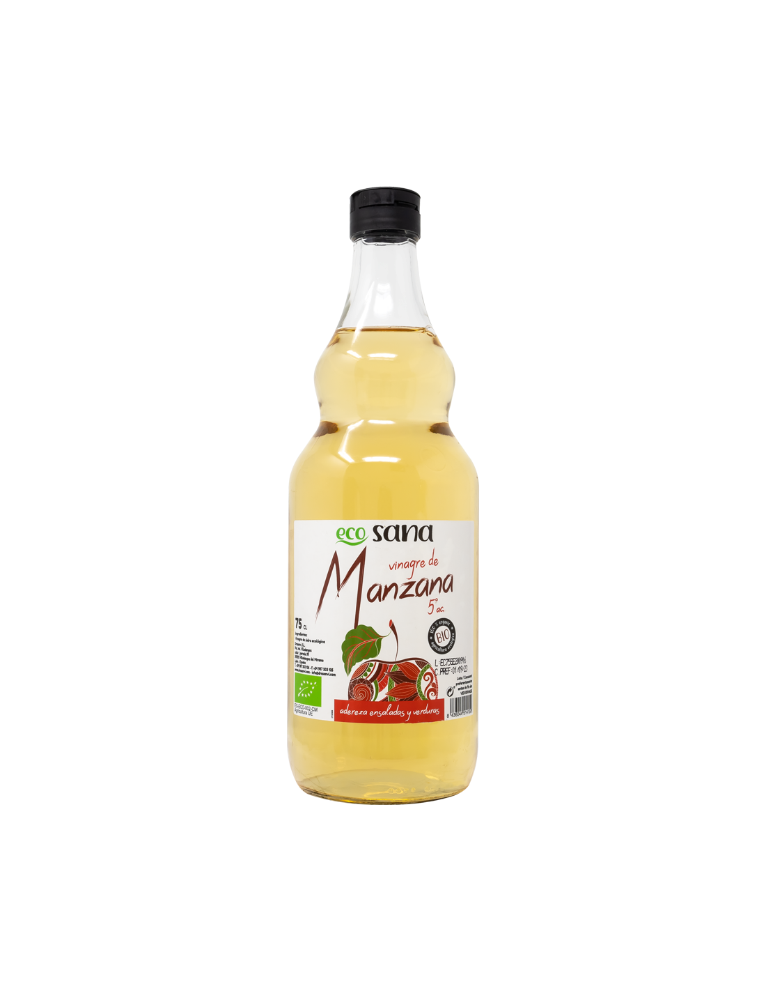 Ingredientes:Vinagre de manzana* ecológico. (*) Procedente de agricultura ecológica.Modo de empleo:Úsalo a tu gusto.Presentación:Envase de 750 ml.Recomendaciones y advertencias:Producto vegano. No contiene gluten, aditivos ni conservantes. No OMG. Producto no pasteurizado.