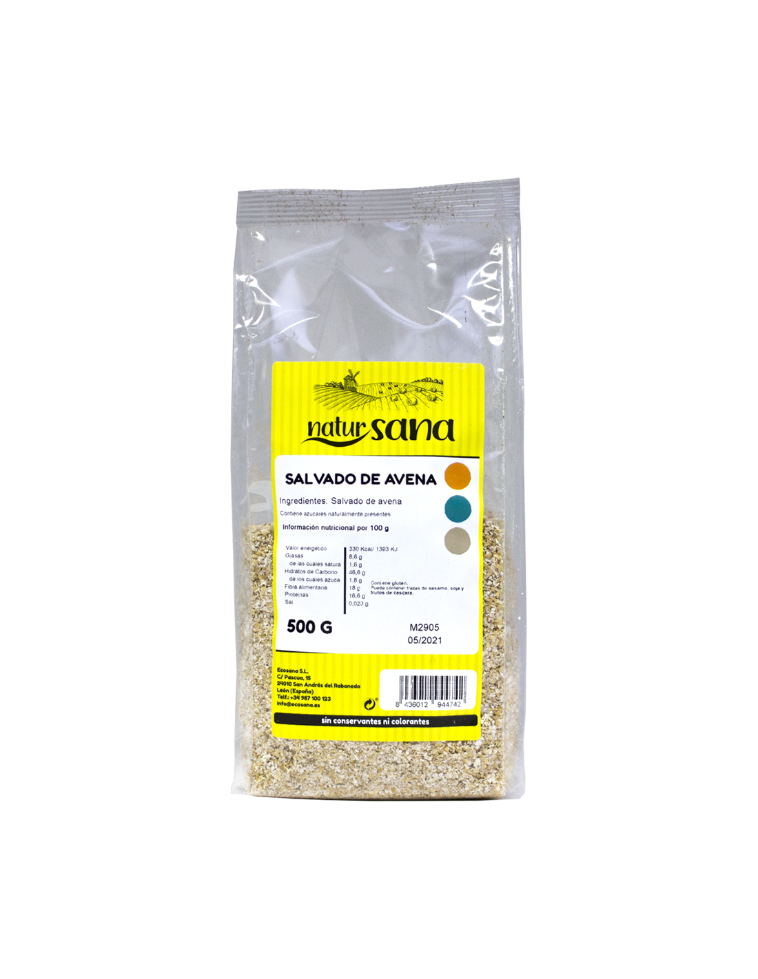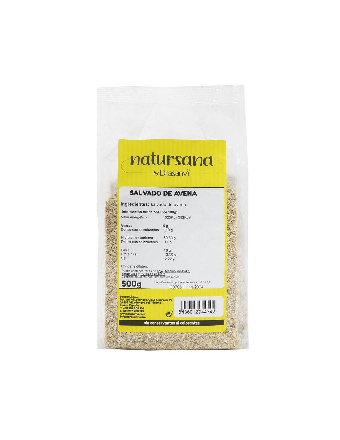 Ingredientes:Salvado de avena.Valor nutricional por 100 gramos: