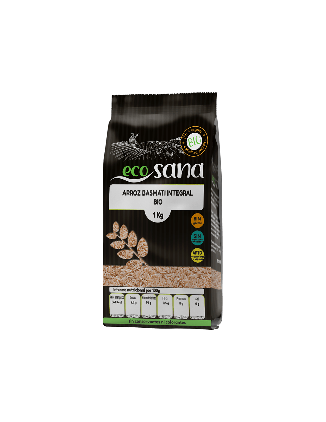 Ingredientes:Arroz Basmati Integral*. (*) Procedente de agricultura ecológica.Valor nutricional por 100 gramos: