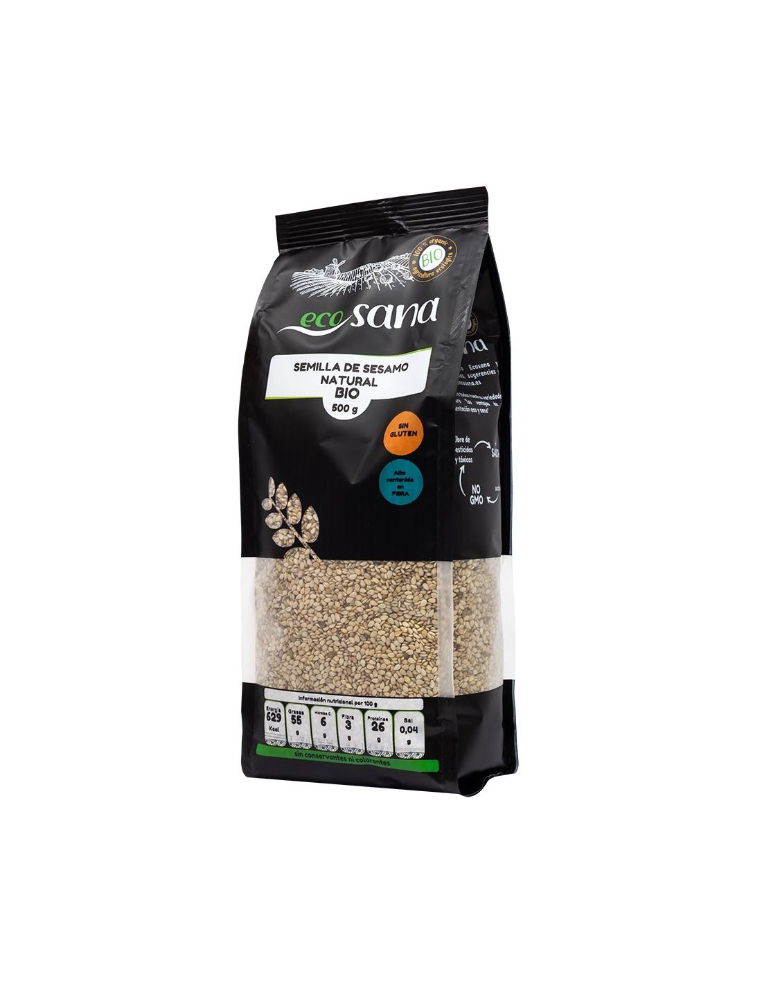 Ingredientes:Semillas de sésamo natural*. (*) Procedente de agricultura ecológica.Valor nutricional por 100 gramos: