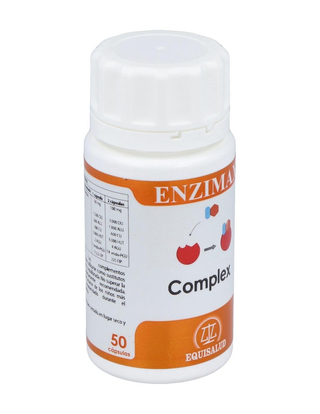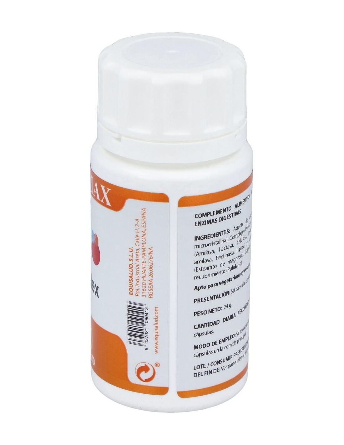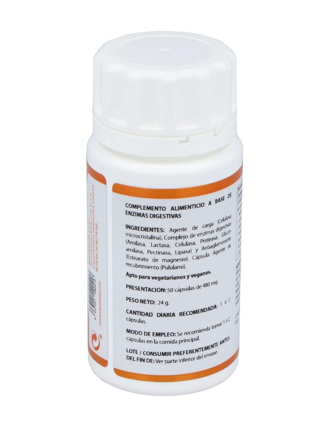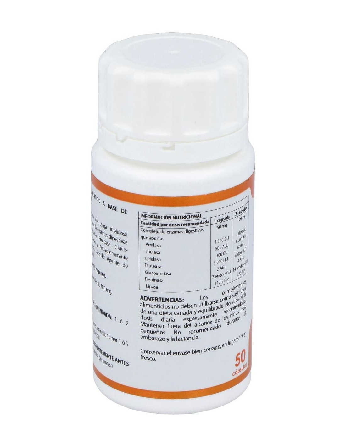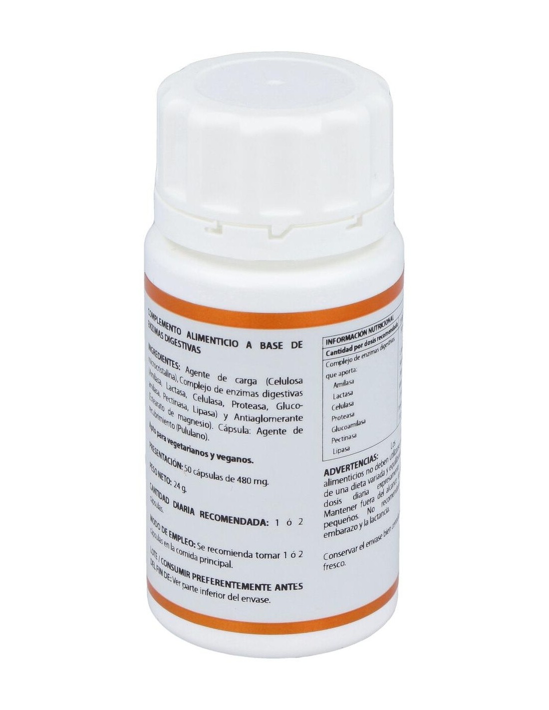 Mezcla de enzimas digestivas (amilasa 1.500 DU, proteasa 3.000 HUT, glucoamilasa 2 AGU, lipasa 112,50 FCC FIP, celulasa 300 CU, lactasa 500 ALU, pectinasa 7 endo PGU.), 50 mg. Envoltura: polisacárido de origen vegetal (pululano).