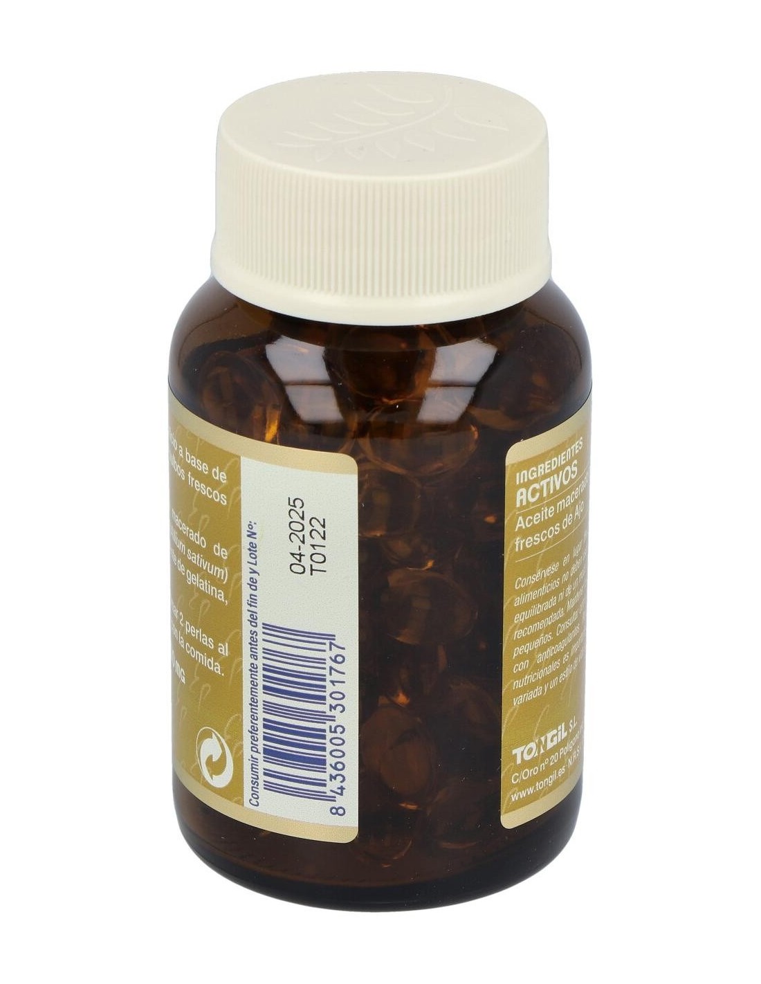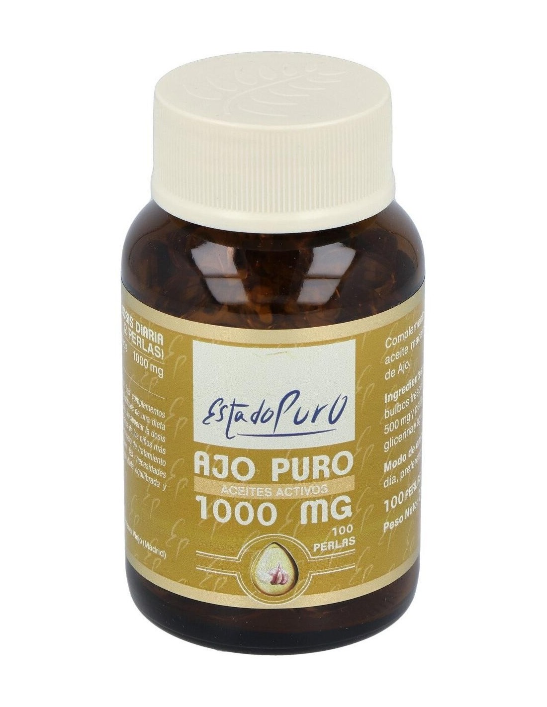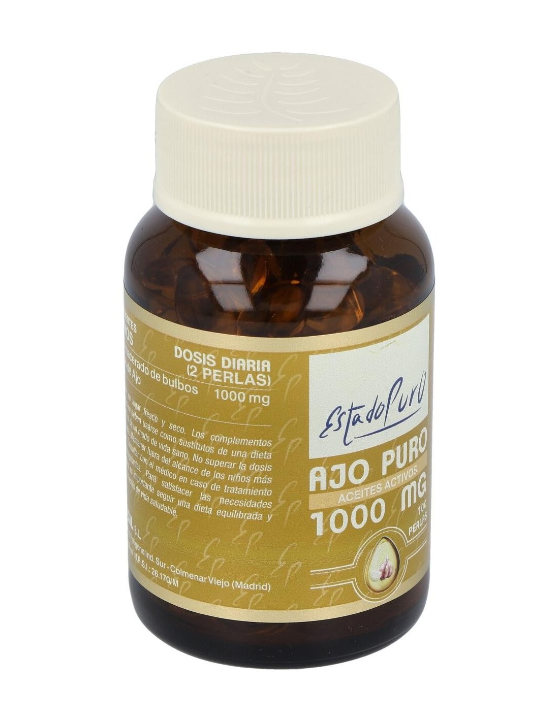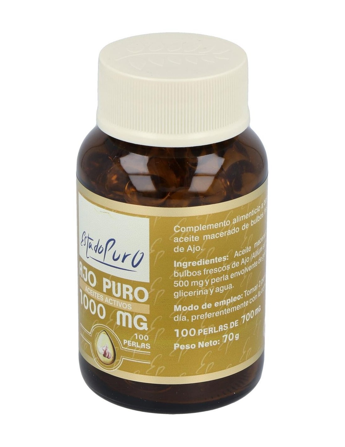 Composición activa por 2 perlas:1.000 mg de aceite macerado de bulbos frescos de Ajo.Otros ingredientes:Perla envolvente de gelatina, glicerina y agua.Modo de empleo:Tomar 2 perlas al día con las comidas.Presentación:Bote de 100 perlas.