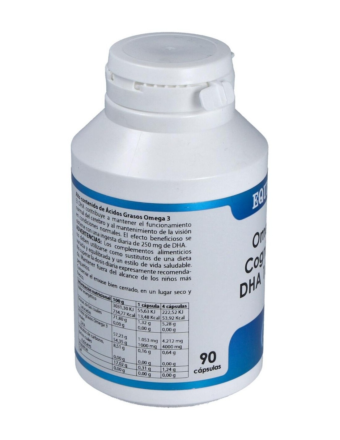 Complemento alimenticio a base de omega-3 DHA. El ácido docosahexaenoico (DHA) contribuye a mantener el funcionamiento normal del cerebro y al mantenimiento de la visión en condiciones normales. El efecto beneficioso se obtiene con una ingesta diaria de 250 mg de DHA.