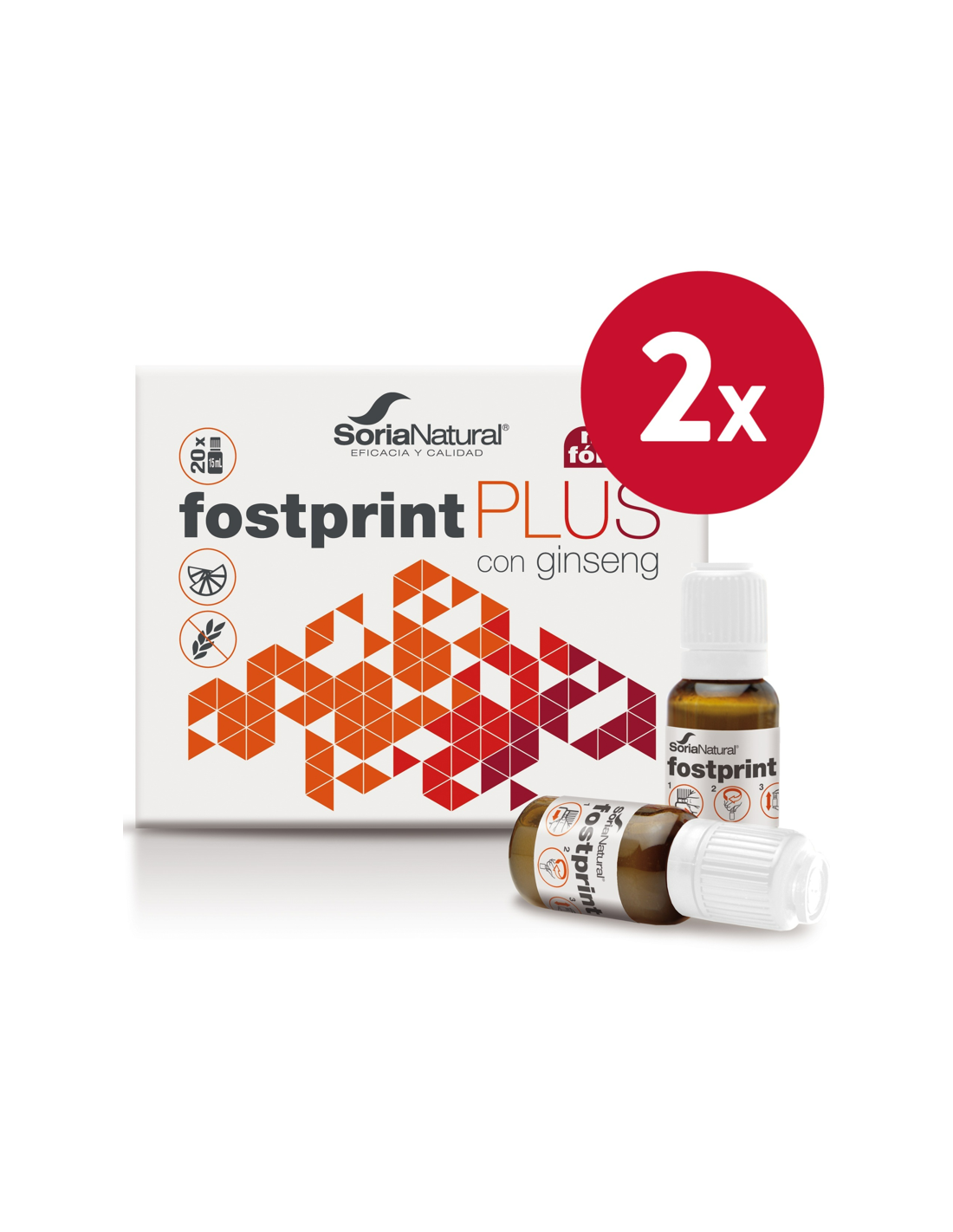 Fost Print Plus de Soria Natural es un complemento alimenticio. Nueva fórmula. Con Ginseng y Acetil L-Carnitina, NADH, Jalea Real liofilizada, Propóleo, Vitaminas del grupo B (B1, B2, B3, B6, Ácido pantoténico y Biotina), Vitamina D, Vitamina E, L-Teanina y Manganeso. Las vitaminas B2, B3, B5, B6 ayudan a disminuir el cansancio y la fatiga. La vitamina B5 contribuye al rendimiento intelectual normal. 210 mg de Jalea real liofilizada equivalen a 1 g de Jalea real fresca.