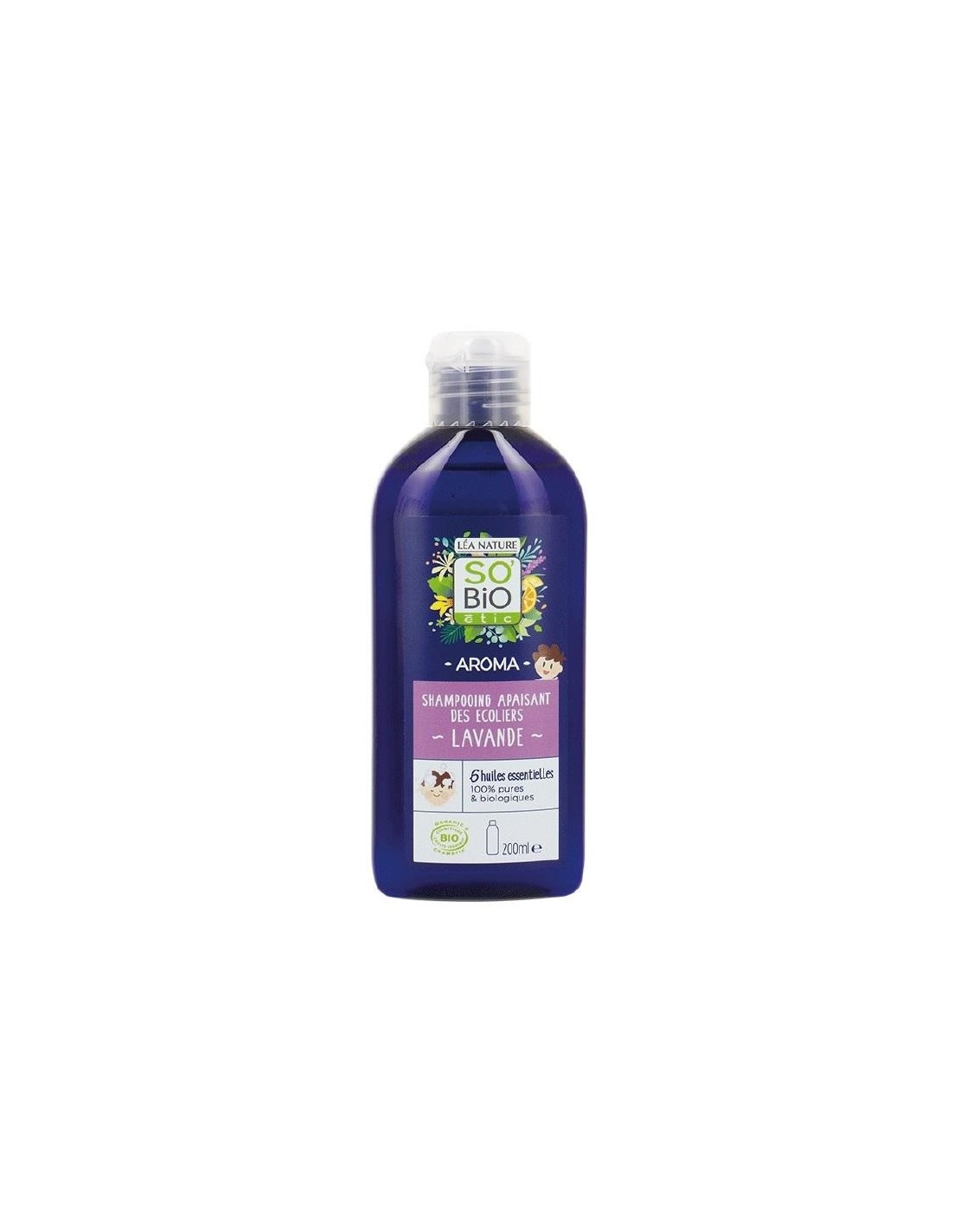 Champú calmante para niños es ideal para afrontar con serenidad la jornada escolar. Con una combinación de aceites esenciales con propiedades contra piojos. Con certificación Ecocert COSMOS ORGANIC.