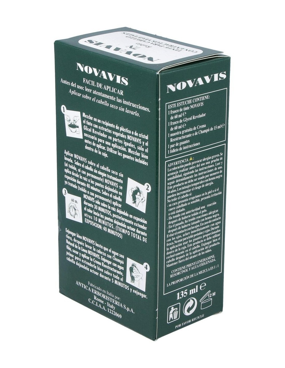 1. Mezclar en un recipiente de plástico o de cristal el tinte con extractos vegetales y el Glicol Revelador en partes iguales, sólo el necesario para una aplicación. Mezclar bien antes de aplicar. Utilizar los guantes incluidos dentro de la caja.