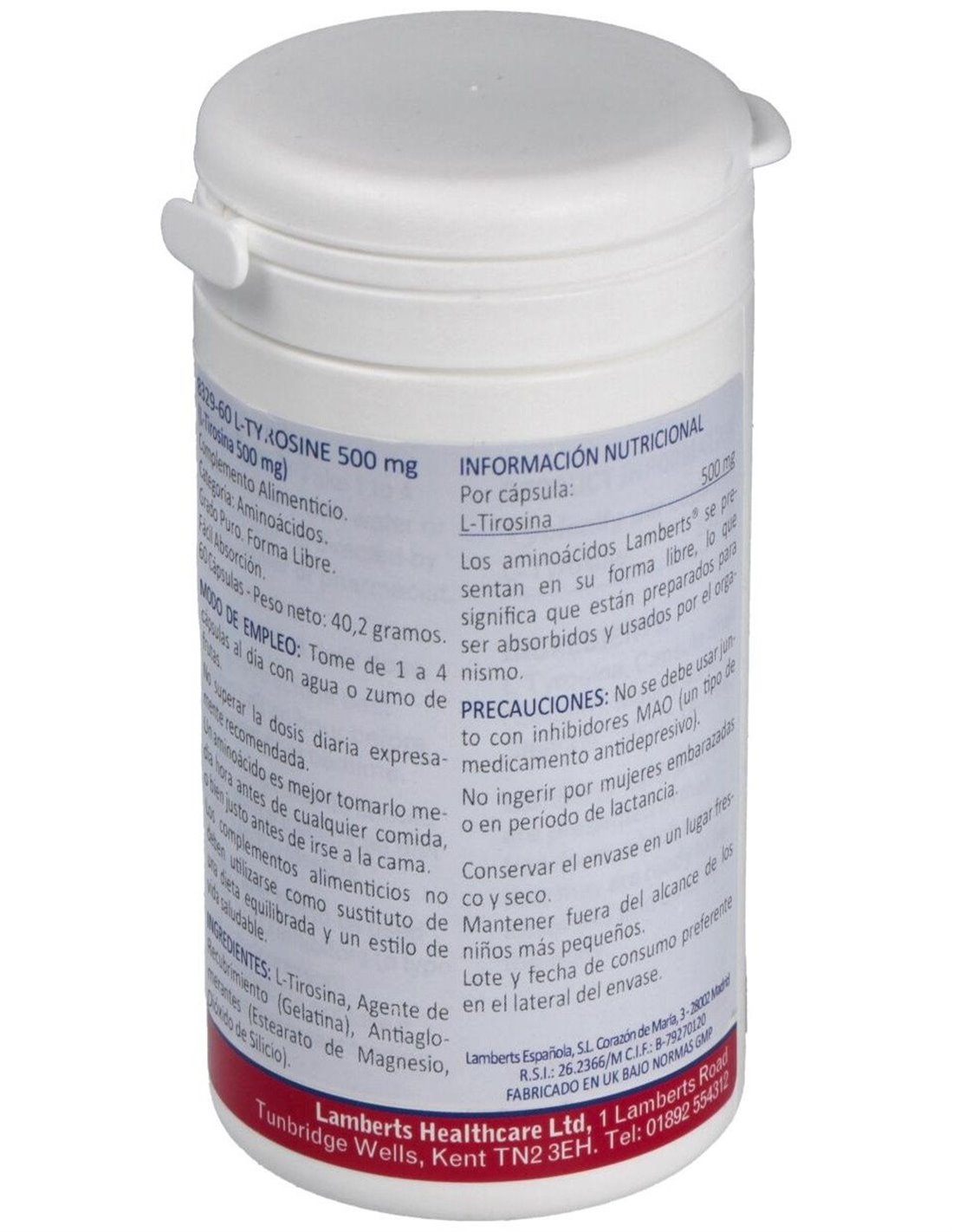 La L-tirosina no debería utilizarse junto con inhibidores de la MAO (un tipo de fármaco antidepresivo). Este producto no está recomendado para niños ni para mujeres embarazadas o en período de lactancia.