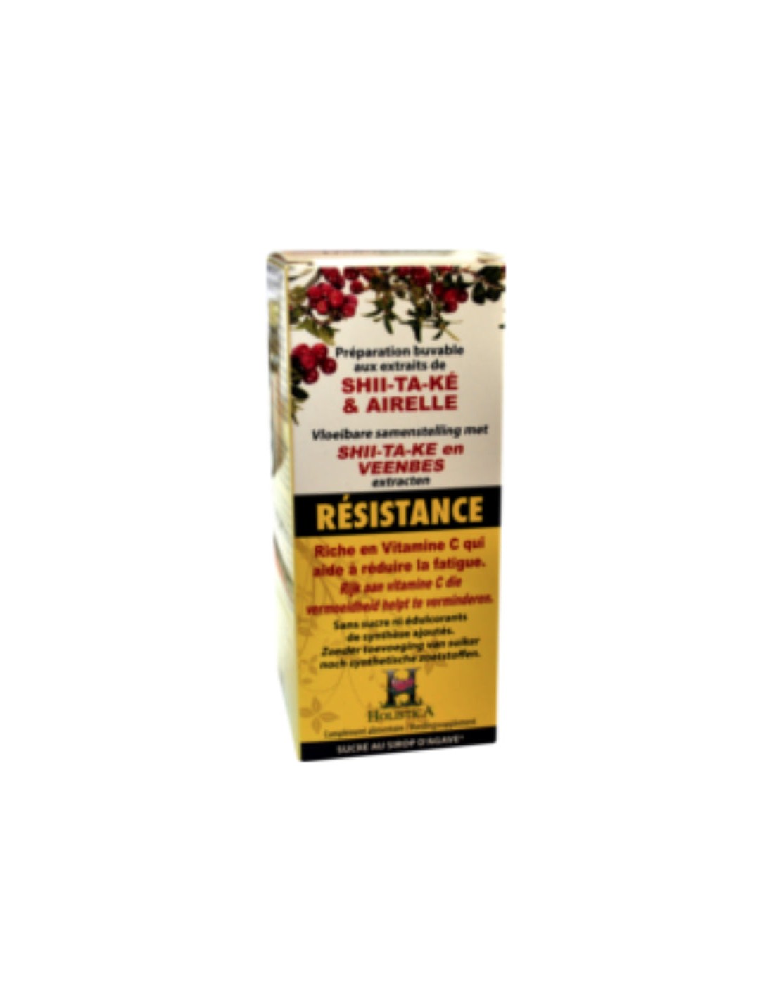 Hace más de 20 años que Holistica, el primer laboratorio francés especialista en Shii-ta-ke, creó el suplemento alimenticio en cápsulas Shitaker de Holistica, con el primer extracto total de este hongo alimenticio, considerado como un elixir de vida durante siglos en otros paises. Desde 1992 Holística demostró en sus estudios, bajo supervisión médica de 50 casos (25 niños y 25 adultos), que el extracto de Shii-ta-ke suponía un aporte de vitalidad significativo (70% de los usuarios) y contribuía a optimizar un 82% la resistencia de los sujetos que habían estado expuestos a bajas temperaturas. Hoy Holisitca propone todos los beneficios de su extracto de Shiitake, concentrado en polisacáridos, bajo esta nueva forma de delicioso jarabe, hecho con jarabe de agave orgánico, lo que permite su conservación en forma líquida sin ningún tipo de conservante sintético. Esta forma líquida y su agradable sabor facilitan la adaptabilidad de las dosis especialmente para niños pequeños, ya que el producto puede ser fácilmente diluído en un biberón. También facilita la dosificación para personas mayores que no pueden tragar las cápsulas con facilidad. El extracto de arándano rojo (en su variedad Vaccinium Vitis Idaea) se consume frecuentemente en países fríos, como Escandinavia, porque es muy rico en fitonutrientes naturales protectores y antioxidantes. Como otras variedades de frutos Vaccinium, como el arándano, el extracto de Vaccinium Vitis Idaea contribuye al desarrollo de la flora bacteriana como alternativa a los lácteos probióticos. Los extractos de Grosella Negra y de Rosa Salvaje aportan un efecto nutri-protector, como fuente natural de flavonoides que contribuyen a la protección general del organismo. Ingredientes activos por 5 ml: