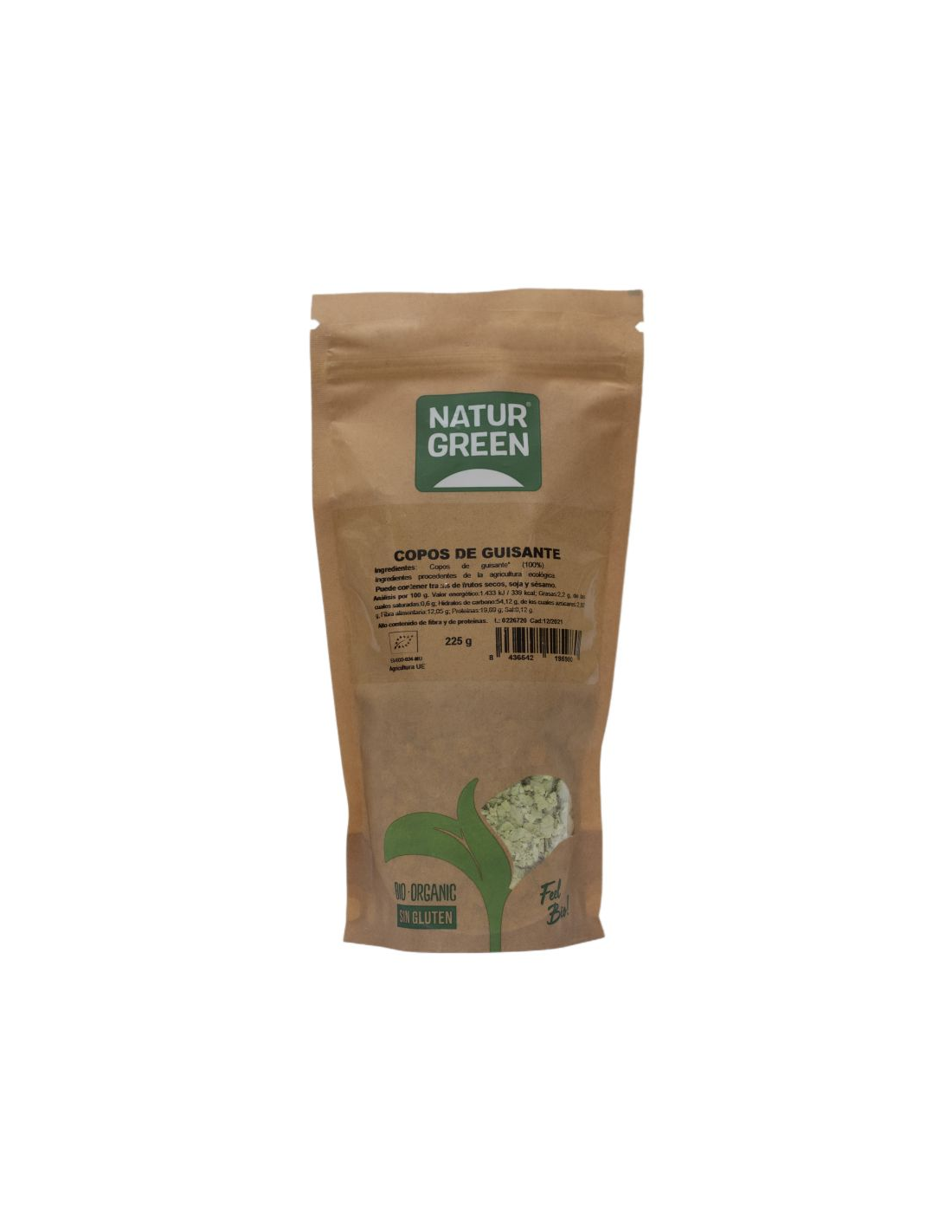 Copos de Guisante* (100%). *Ingrediente procedente de la Agricultura Ecológica. "Este producto se fabrica en una planta donde se manipulan frutos secos, soja y sésamo"