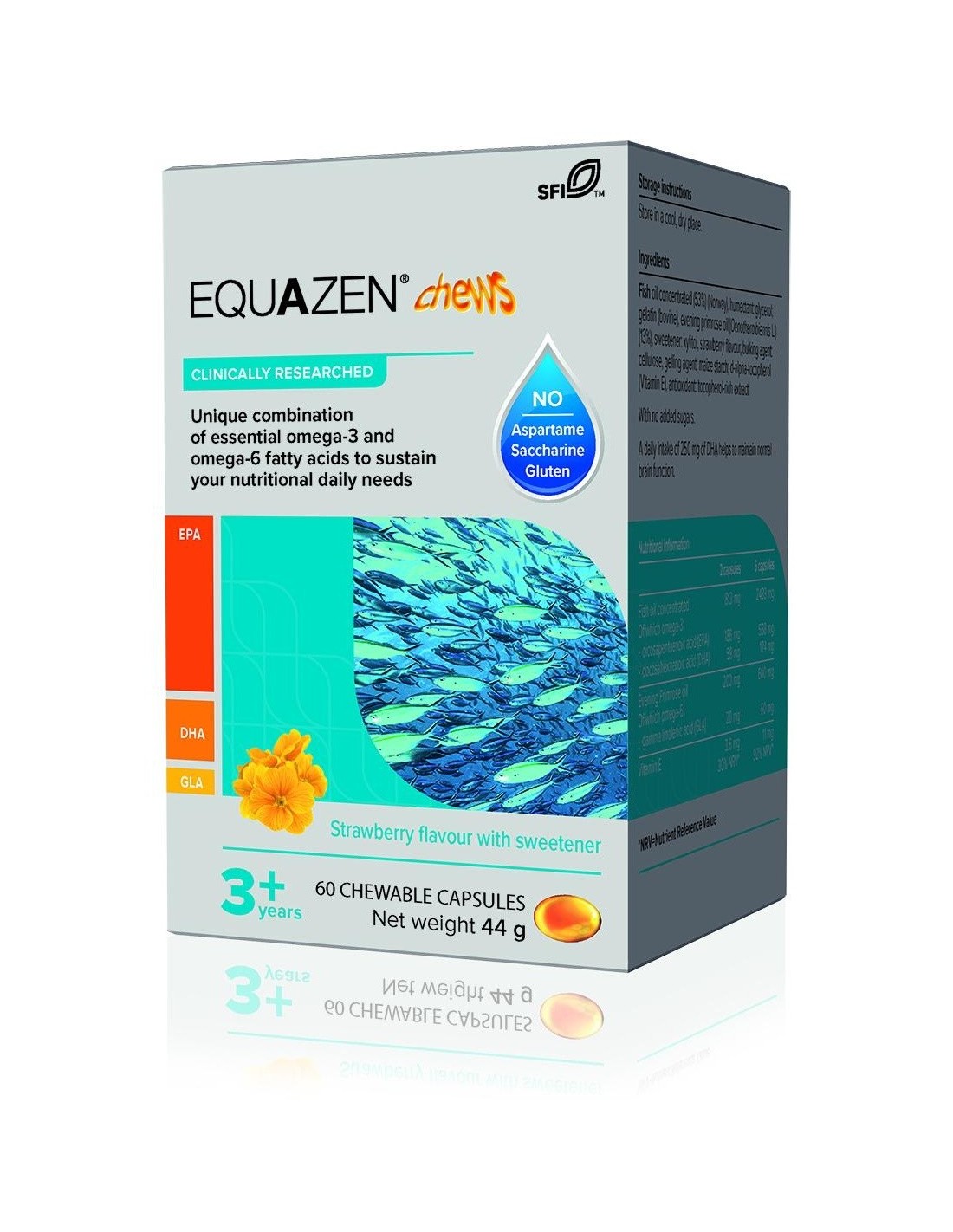 813 mg de aceite de pescado rico en omega 3 (186 mg ácido eicosapentaoico (EPA) y 58 mg de ácido docosahexpanetaoico (DHA)).