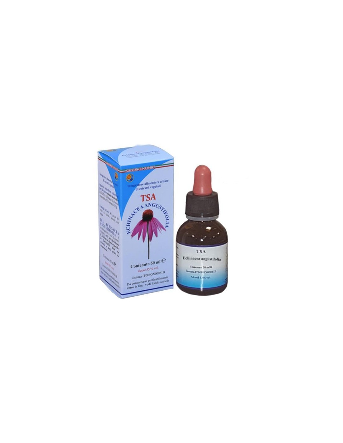 La TSA Echinácea Angustifolia se obtiene remojando las sumidades, recién recogidas en su tiempo balsámico (Julio-agosto para toda la planta con flores, en octubre por el rizoma), en una solución que está compuesta de alcohol espagírico y agua, siguiendo el método espagírico-alquímico de Solanimus. La planta tiene propiedades bacteriostáticas y virusstáticas contra varias bacterias, virus (virus del herpes, influenza A y B, y otros) y tricomonas.Síntesis psíquica: Estimula el verdadero "Yo" interior, lo despierta. Además a fortalecer el sistema inmunológico (útil para muchas enfermedades), también fortalece el psíquico, sobre todo cuando la persona ha conocido a fuerzas chocantes y destructivas. Ayuda a recuperar la verdadera identidad del ego y de la dignidad de la persona, en relación con el entorno y con las personas. Ayuda cuando hay entumecimiento, llevando así la presencia de espíritu.Ingredientes por 120 gotas:Solución hidroalcohólica Espagirico-Alquímica con una relación de extracción de 1:5 (R.E. 1/5) de Equinácea (Echinacea angustifolia DC.) sumidades 3,3 g.Modo de empleo:Tomar 25-40 gotas en un poco de agua, 3 veces al día.Presentación:Envase de 50 ml.