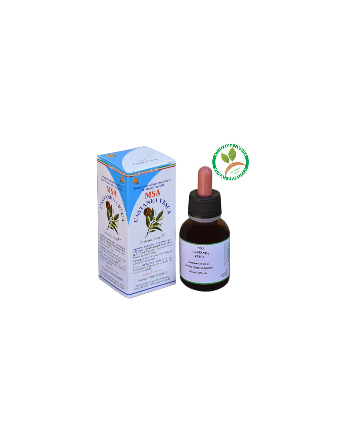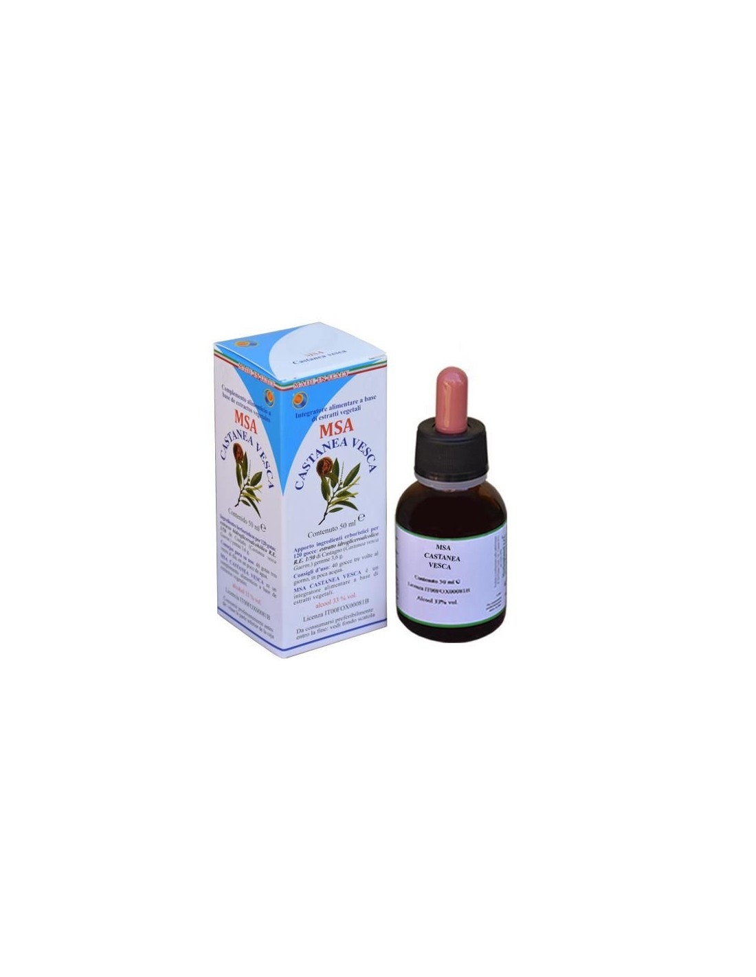 La solucion hidro-gliceroalcohólica está hecha con el método espagírico-alquímico de Solanimus (MSA) que incluye todas las fases de la Espagiria clásica con la adición final de una fase específica de la Filosofía Alquímica. Hemos unido la Espagiria y la Alquimia para obtener lo mejor de las plantas.Es capaz de reducir los fenómenos de congestión y engorgement linfático en los miembros inferiores, es por consecuencia, un excepcional drenante linfático, por las vasculopatías y en los edemas de las extremidades inferiores. La estasis linfático juega una función principal en la insuficiencia venosa de los miembros inferiores.Síntesis Psíquica: El tipo Castanea es un tipo majestuoso, imponente, con cabello espeso, pero también si es majestuoso y duro como una roca, usted puede desmoronarse repentinamente. Prefiere el calor a el frío (... necesito de sol...). Ayuda al individuo a soportar las fatigas, tanto psíquicas como físicas, cuando necesita de un apoyo moral y calor. Sentido de aislamiento profundo. Renuncia completa. Ansiedad extrema. Aislamiento total, profundo abandono. Angustia profunda , desolación. Ansiedad como angustia. Ansiedad como desolación.Ingredientes por 120 gotas:Solución hidro-gliceroalcohólica Espagirica con una relación de extracción de 1:50 (R.E. 1/50) de Castaño (Castanea vesca Gaertn.) yemas 3,6 g.Modo de empleo:Tomar 25-40 gotas en un poco de agua, 3 veces al día.Presentación:Envase de 50 ml.