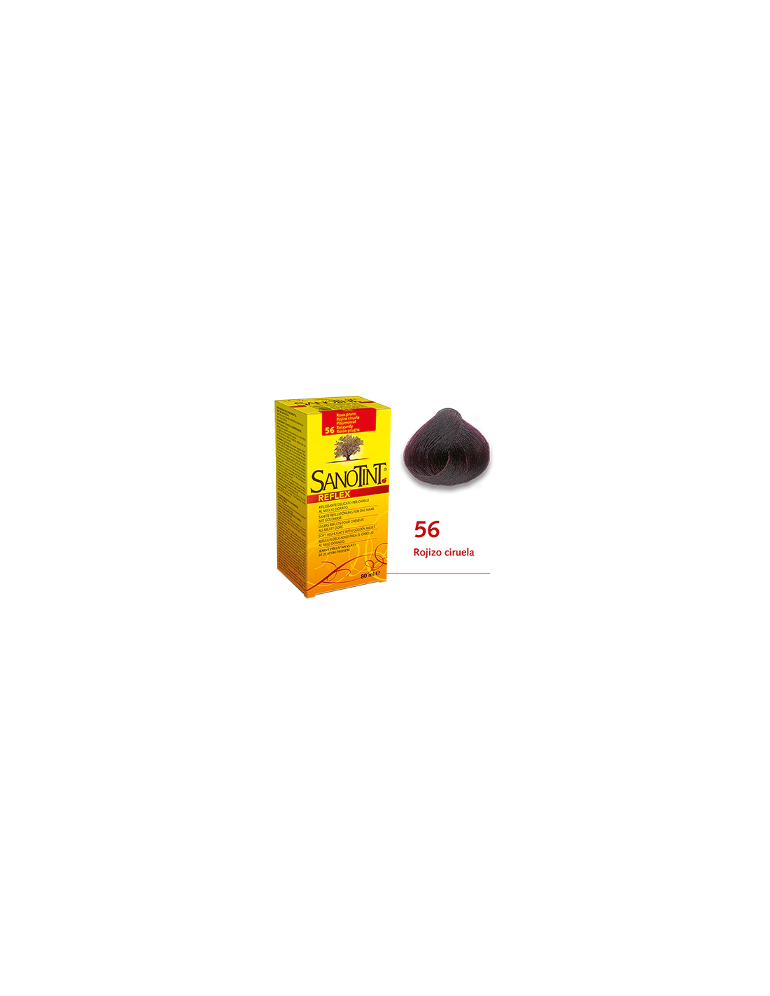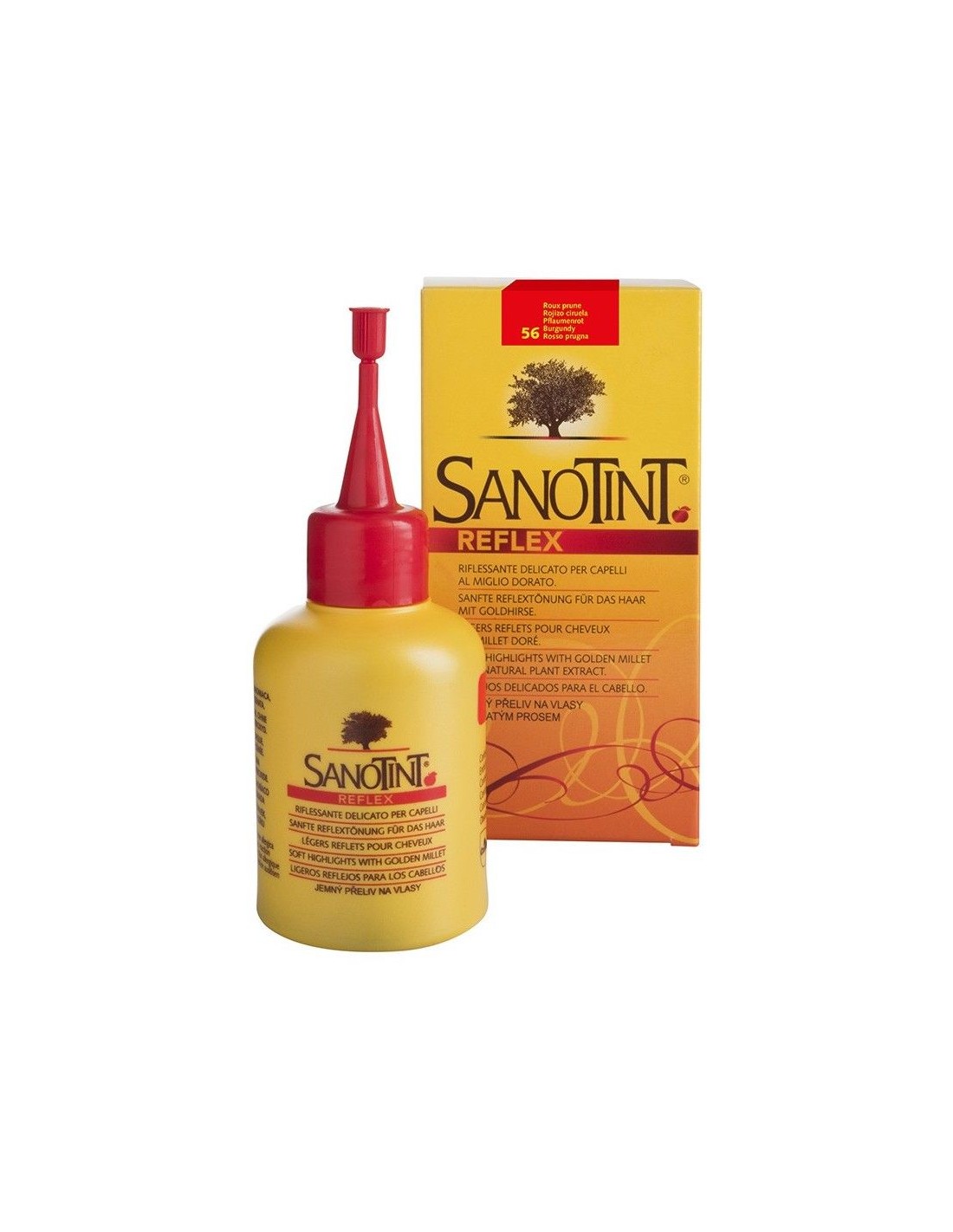 Sanotint Reflex es un producto a base de plantas con extractos de manzanilla, quino, hojas de olivo y mijo dorado que interactúan entre sí y dan reflejos brillantes y vivos al cabello creando diferentes tonos desde el negro hasta el rojo intenso cálido. Al no ser un tinte, los pigmentos del reflejo no penetran en el cabello, sino que solo recubren la parte externa del mismo, por lo que el color se elimina gradualmente en 5 a 6 lavados.Sanotint Reflex cubre delicadamente el cabello blanco, pero no de manera permanentemente como un tinte. Sanotint Reflex está listo para usar. No es necesario mezclar los componentes antes de la aplicación.Ingredientes (INCI):Extractos vegetales de camomila, mijo dorado, hoja de olivo (aguamarina, metoxiisopropanol, cocamidopropil betaína, hidroxietilcelulosa, parfum, laurdimonio, hidroxipropilo, proteína de trigo hidrolizada, poliquaternium-22, propilenglicol, hidróxido de sodio, extracto de acetato de pantóxido, pantóxido de pantopropileno, extracto de acetato de pantóxido de pantodio, extractor de sodio, extracto de acetato de pacóxido de sodio, extracto de pantoruro de sodio y ácido clorhídrico. Extracto de hoja de Olea europaea, extracto de Cinchona, extracto de Chamomilla recutita, butilparabeno, etilparabeno, propilparabeno, metilparabeno, fenoxietanol, ácido sórbico, caprilil glicol, linalool).Modo de empleo:Seguir atentamente las instrucciones que encontrarás en el interior.Presentación:El envase contiene: