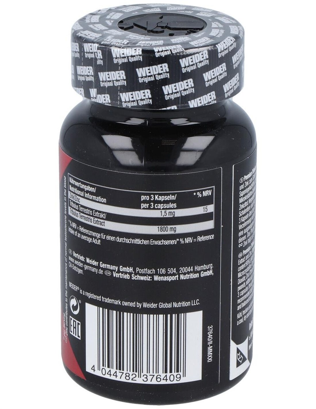 Aporta la potente cantidad de 1800 mg de Tribulus Terrestris de alta calidad en cada dosis, el cual está estandarizado para un 90% de saponinas esteroideas. Además, está enriquecido con citrato de zinc de primera calidad, el cual contribuye a el correcto mantenimiento y desarrollo de los niveles de testosterona en sangre.