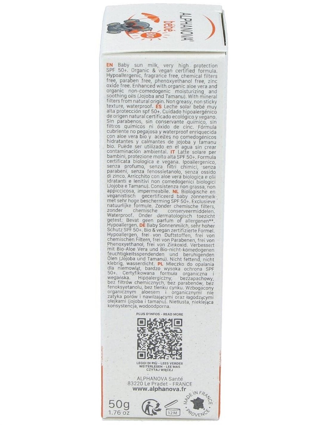 Alta protección solar especial para bebés. Fórmula natural, certificada ecológica, y garantizada sin parabenos, sin alcohol, sin nanopartículas, ni zinc. Filtros 100% minerales. Protección inmediata. Waterproof.