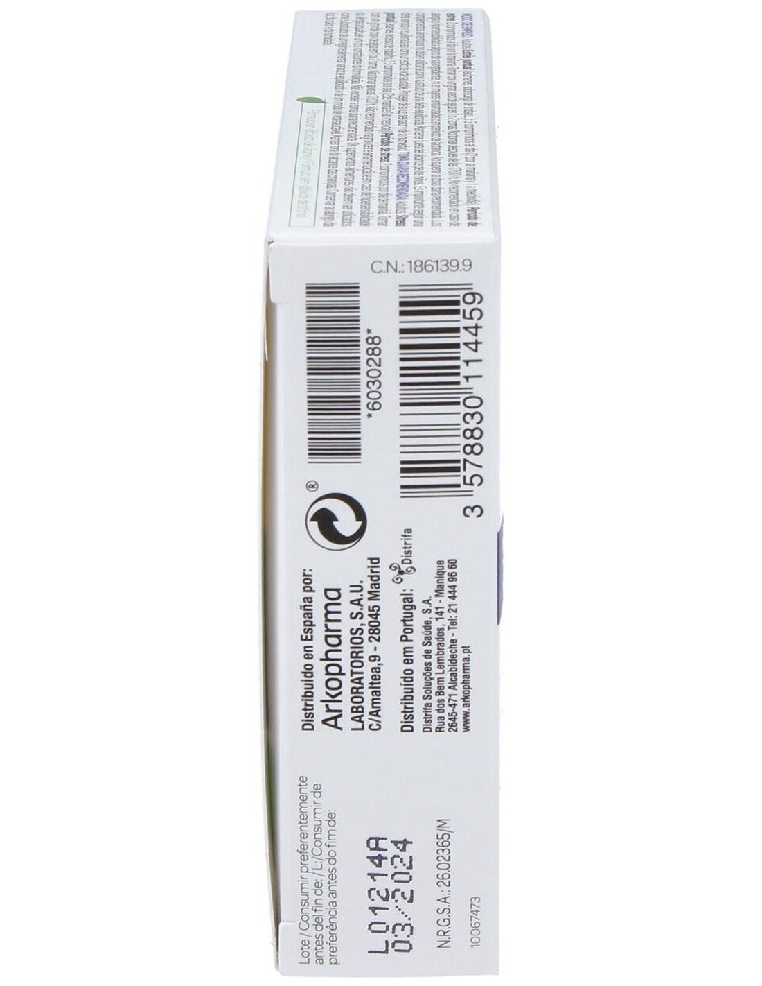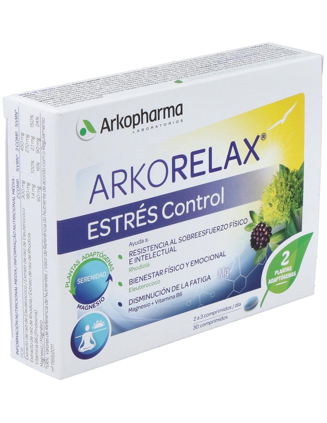 Glicerofosfato de magnesio Agentes de carga: celulosa y derivados, fosfato de calcio Extracto de raíz de Eleuterococo (Eleutherococcus senticosus (Rupr. Ex Maxim.) Maxim.) Extracto de raíz de Rhodiola (Rhodiola rosea (L.) Scop.) Antiaglomerantes: mono y diglicéridos de ácidos grasos, estearato de magnesio Almidón Vitamina B6 (Clohidrato de piridoxina). Recubrimiento del comprimido: Agentes de recubrimiento: celulosa y derivados, ácido esteárico Colorante: carbonato de calcio Colorante concentrado de spirulina y manzana.