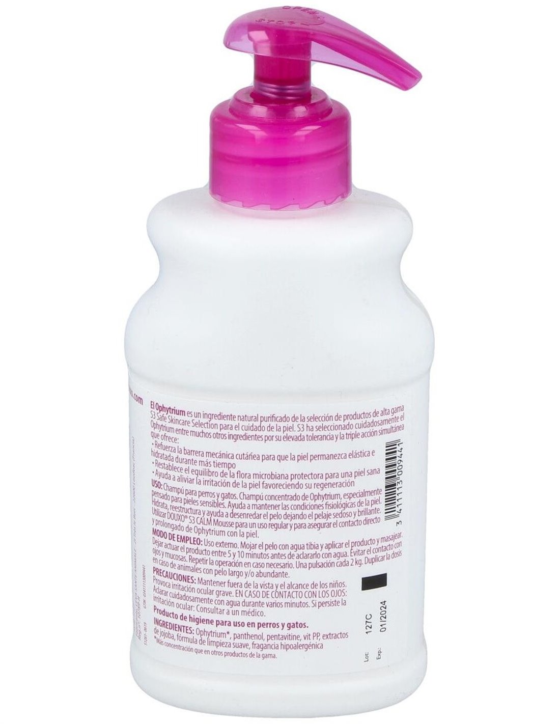 Champú para perros y gatos, concentrado de Ophytrium, especialmente pensado para pieles sensibles. Ayuda a mantener las condiciones fisiológicas de la piel. Hidrata, reestructura y ayuda a desenredar el pelo dejando el pelaje sedoso y brillante.
