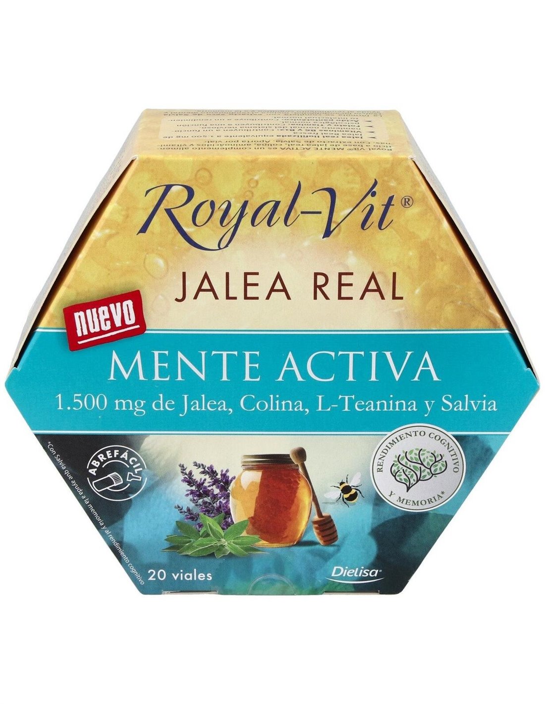 Suplemento a base de Jalea real con colina, aminóacidos, vitaminas y extracto de salvia. Las vitaminas B6 y B12 contribuyen a un funcionamiento normal del sistema nervioso y al funcionamiento normal del sistema inmunológico. El ácido pantoténico ayuda a un rendimiento intelectual normal y reducir el cansancio o fatiga.