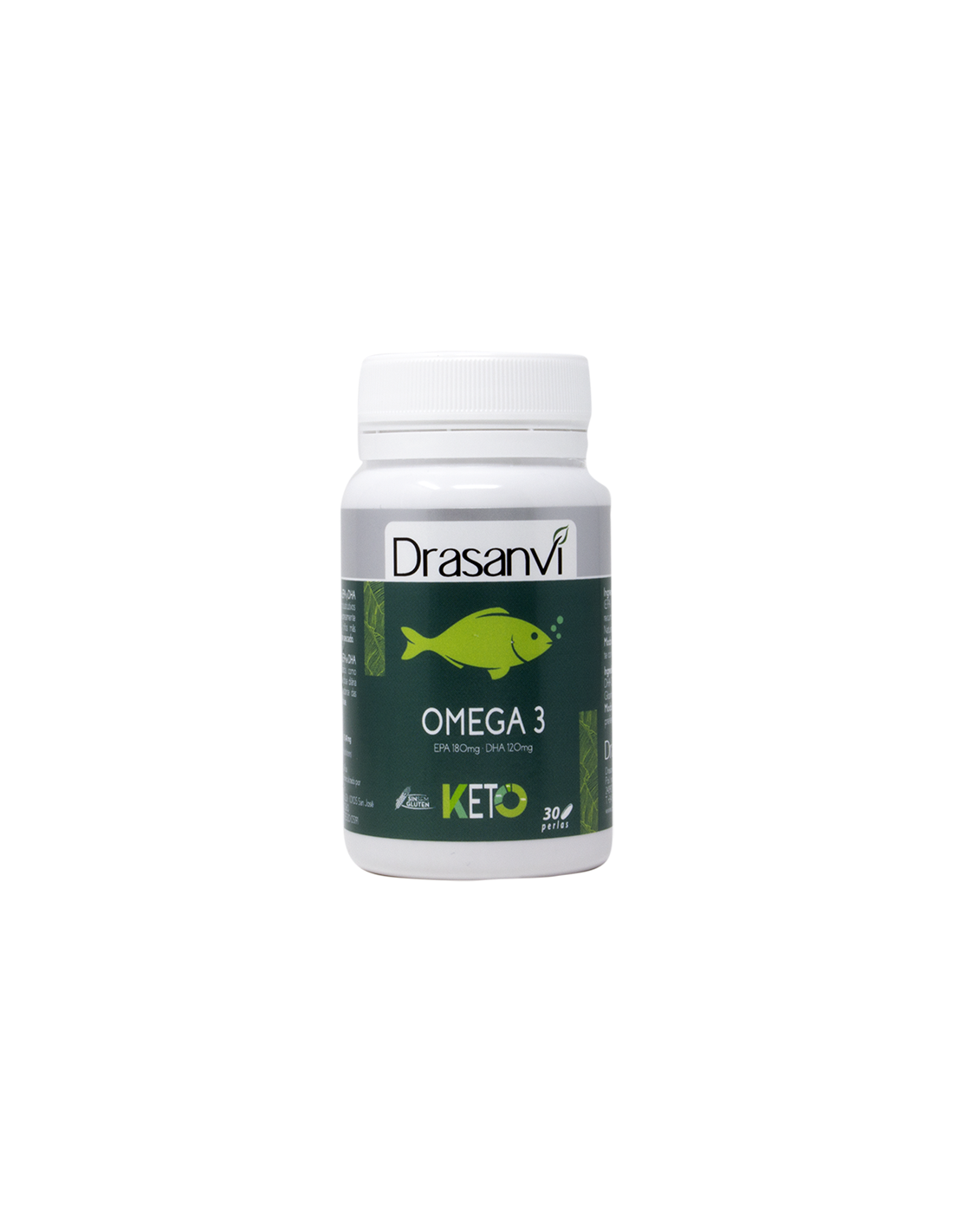 El Omega 3 es un Ácido Graso poliinsaturado, una sustancia que el cuerpo no puede sintetizar y es necesario incorporarlo con la dieta.El Omega 3 esta presentes generalmente en el pescado azul y en algunas semillas vegetales, como lino, chía o las nueces.Si bien la dieta keto puede contener omega 3 de forma natural, muchos alimentos Keto también tienen un alto contenido de omega-6, esto puede alterar el equilibrio entre la cantidad de omega 6 y omega 3. La proporción adecuada es de 1:1Ingredientes:Aceite de pescado (Contiene Pescado)(EPA 18% y DHA 12%)(1.000 mg), Agente de recubrimiento (Gelatina y Glicerina), Vitamina E Natural Como D-alpha tocoferol (20 mg).Modo de empleo:Tomar 1 perla al día, preferiblemente con la comidaPresentación:Envase de 30 perlas.Recomendaciones y advertencias:No contiene gluten. Compatibles con dietas Keto.
