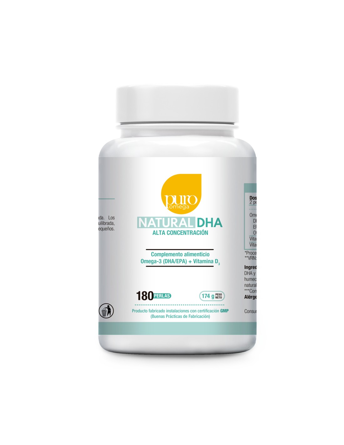 Natural DHA Alta Concentración proporciona 820mg de DHA altamente concentrado y 190 mg de EPA en forma de triglicéridos re-esterificados (rTG), lo cual asegura una mejor absorción de los ácidos grasos Omega-3 en nuestro plasma sanguíneo incluso en ayunas.