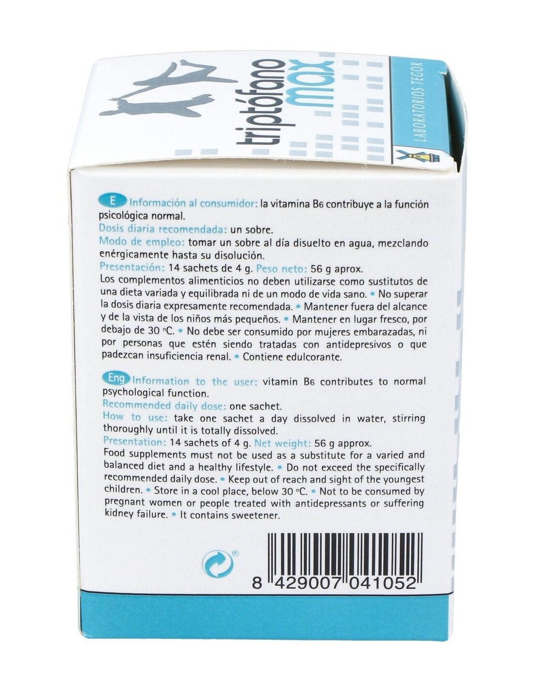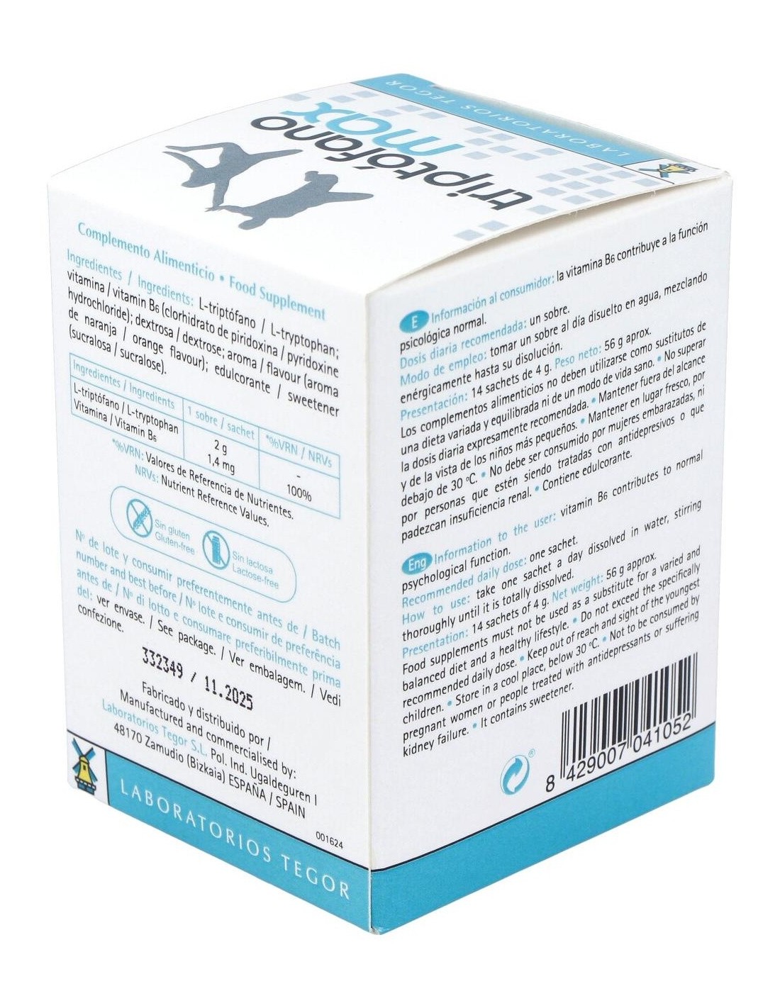 El Triptofano Max 14 Sobres de Tegor es un suplemento dirigido a adultos que buscan apoyar el bienestar emocional y la relajación, formulado con ingredientes que contribuyen a mantener el equilibrio natural del organismo.