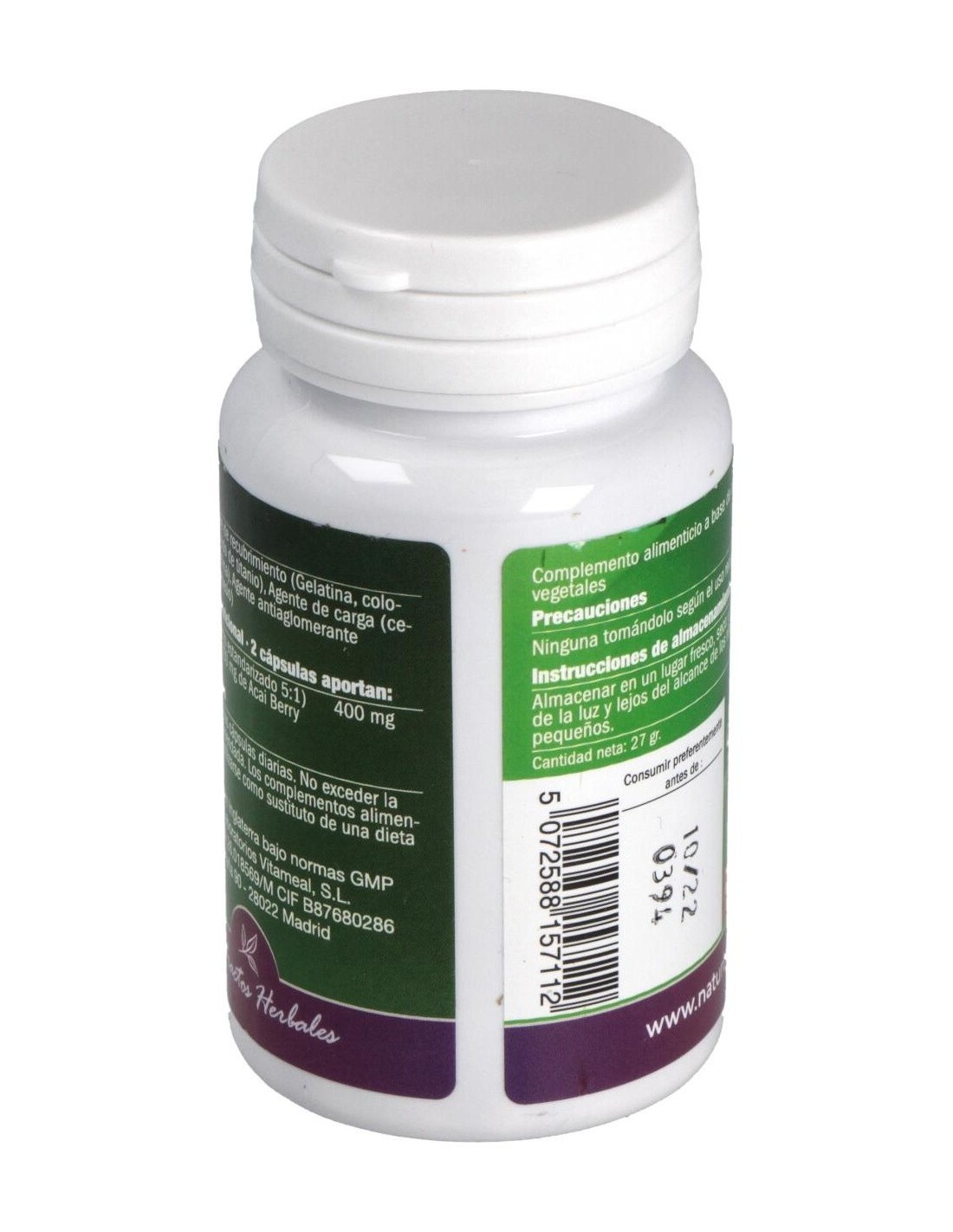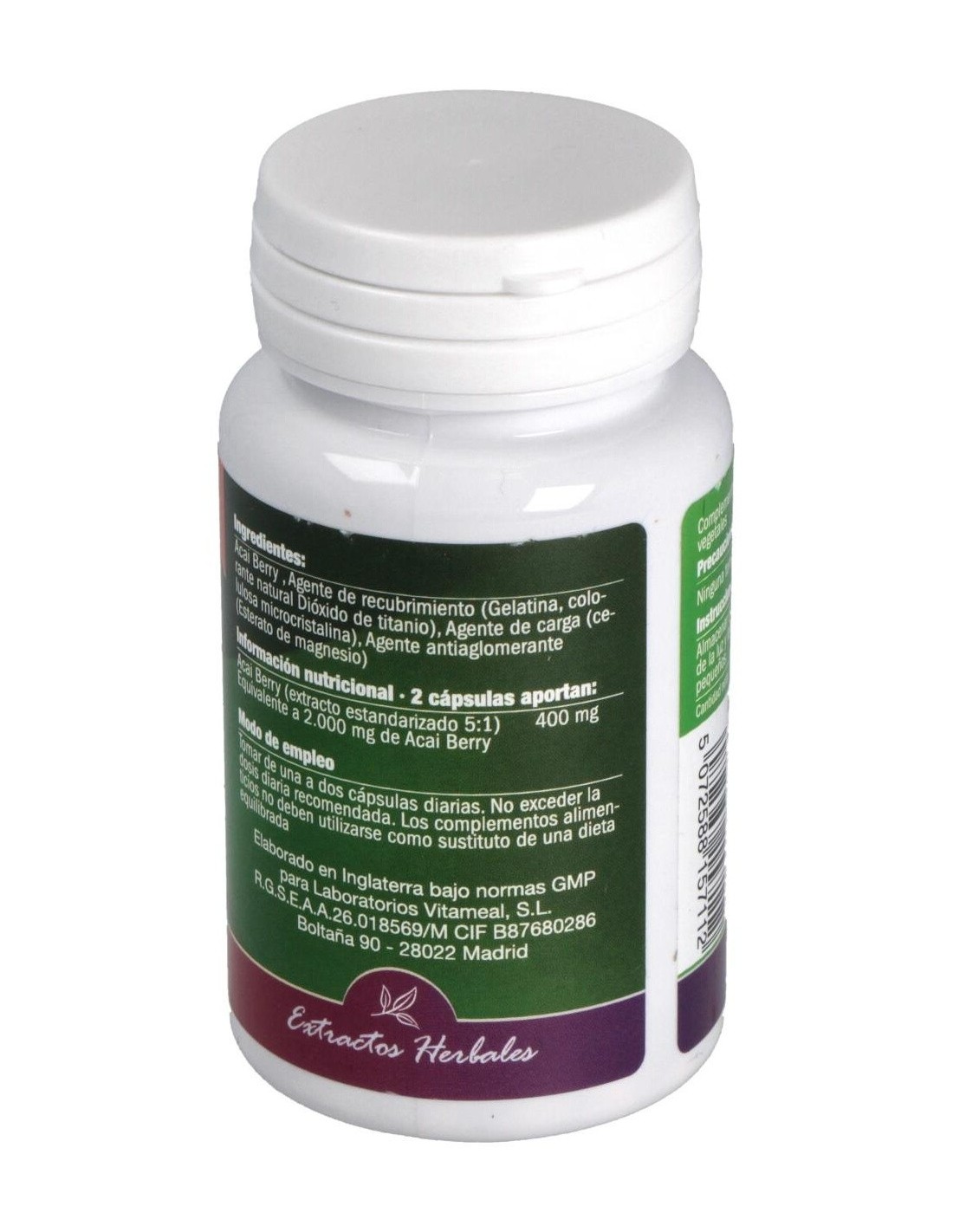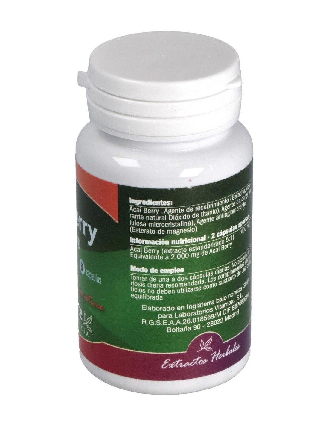 Por 1 cápsula: Acai Berry (extracto 5:1) 200.0 mg proporciona 1.000 mg. Gelatina de la cápsula tamaño 0 blanco (colorante dióxido de titanio)