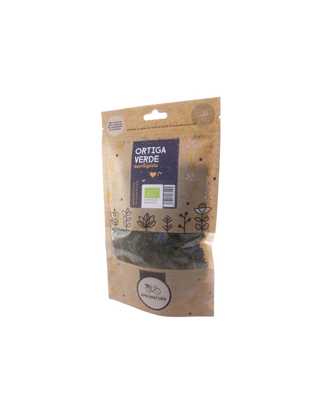 La Ortiga Verde Bio en bolsa kraft de 25 gramos de ANDUNATURA es un producto natural y ecológico, ideal para quienes buscan cuidar su bienestar de forma saludable. Rica en nutrientes y antioxidantes, esta planta ayuda a fortalecer el sistema inmunológico y aporta vitalidad al cuerpo. Perfecta para infusiones o como complemento en recetas, su presentación en bolsa kraft garantiza frescura y conservación óptima. Disfruta de los beneficios de la ortiga verde con la calidad y confianza que ofrece ANDUNATURA.