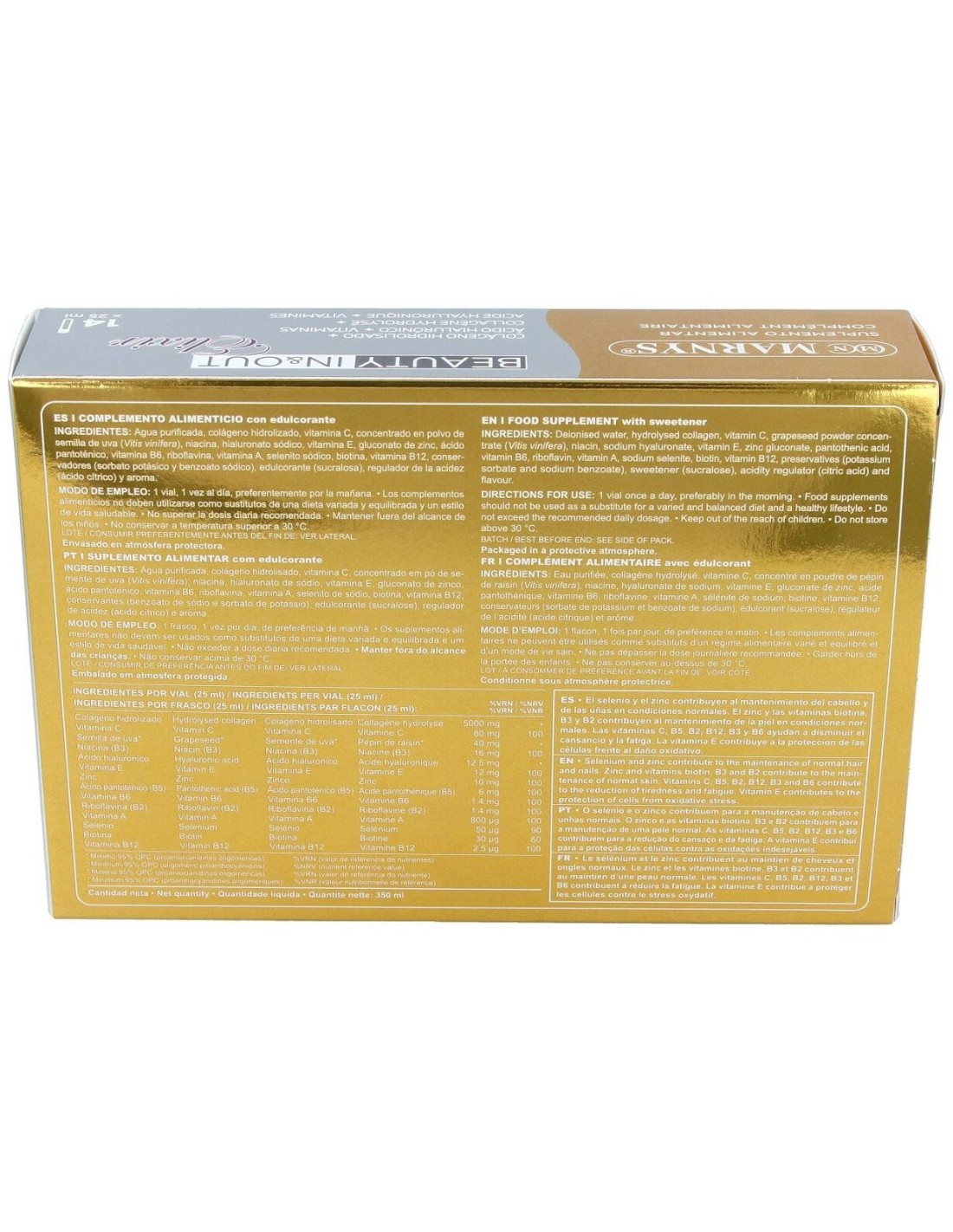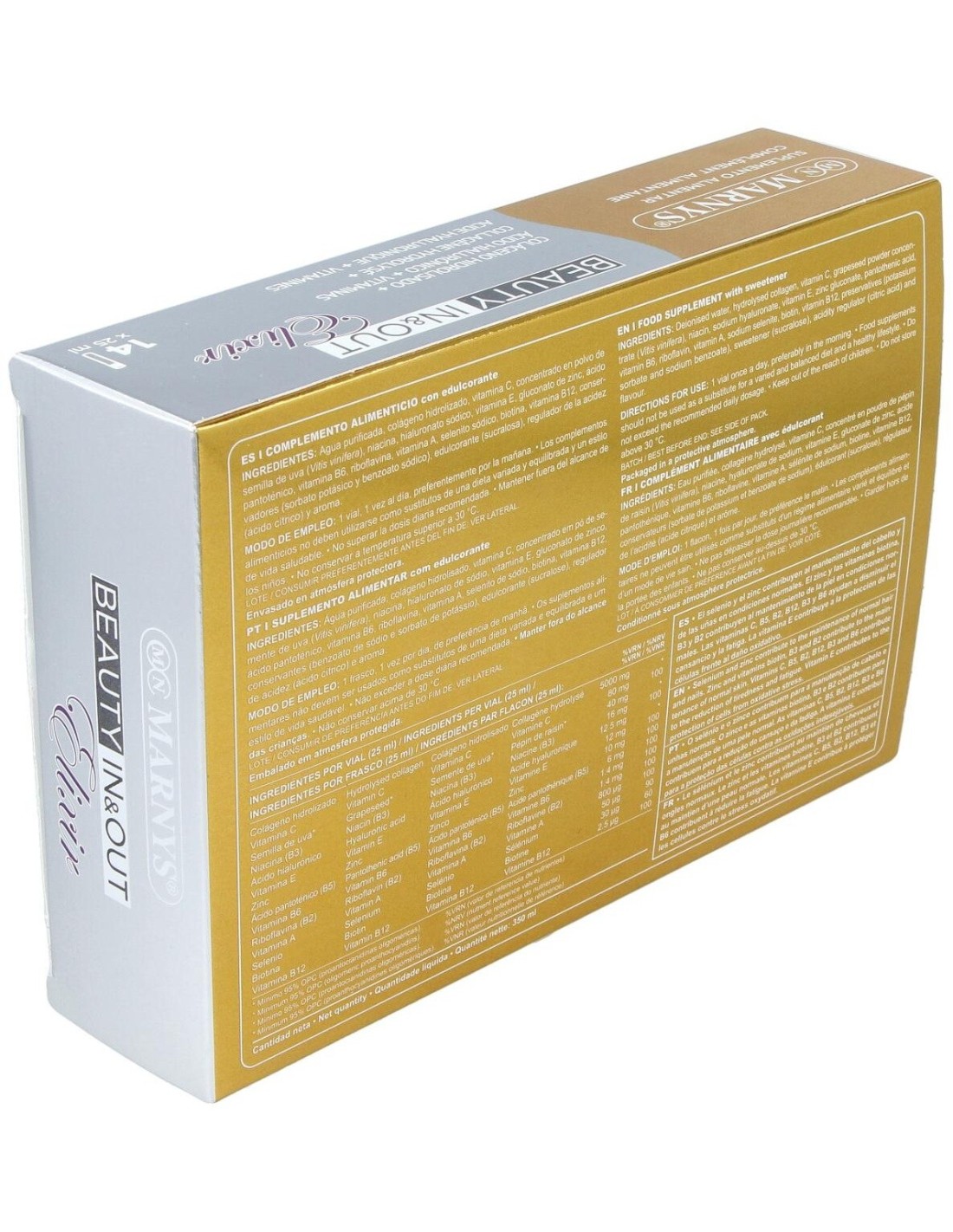 Beauty In & Out Elixir es un complemento alimenticio especialmente formulado para que la sinergia de sus componentes permita reestablecer la textura d