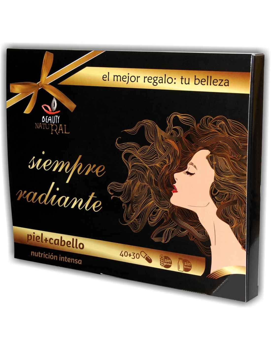 Cápsulas con colágeno, Q-10, ácido hialurónico, licopeno, magnesio, aloe vera, vitaminas, zinc y selenio que contribuyen a la protección de las células frente al daño oxidativo, a la formación normal de colágeno para el funcionamiento normal de la piel y al mantenimiento de la piel en condiciones normales.