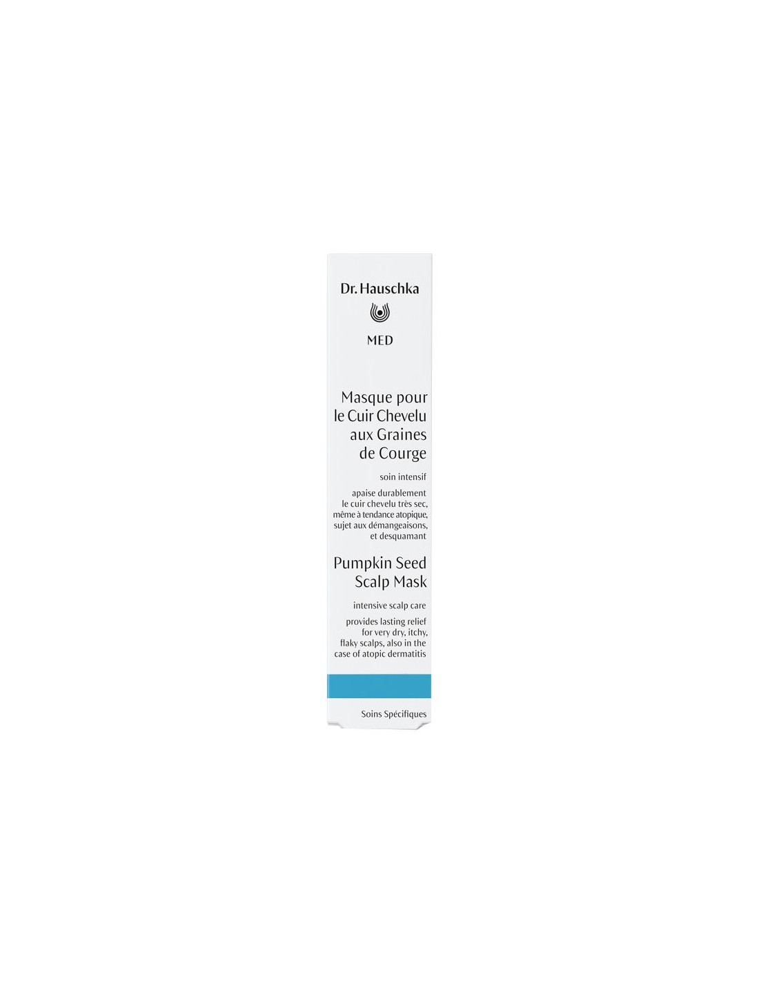 La Mascarilla para Cuero Cabelludo de Semillas de Calabaza de Dr. Hauschka MED está pensada para el cuidado especial del cuero cabelludo muy seco, con picores, descamación y tendencia a la dermatitis atópica. Su fórmula con harina de semillas de calabaza rica en proteínas, extracto de bayas de enebro de acción reguladora y una proporción elevada de preciados aceites vegetales devuelve el equilibrio al cuero cabelludo irritado y calma el picor de forma duradera.La combinación de los aceites de oliva, jojoba y aguacate con ceras de alta calidad reduce notablemente la sequedad de la piel, la sensación de tirantez y el picor. Los extractos de la planta de la escarcha hidratan y prolongan la hidratación del cuero cabelludo durante más tiempo. La Mascarilla para Cuero Cabelludo de Semillas de Calabaza también es apta para niños al no llevar perfumes añadidos. Efecto y tolerabilidad probados dermatológicamente incluso en personas con tendencia a la dermatitis atópica.La Mascarilla para Cuero Cabelludo de Semillas de Calabaza proporciona un alivio duradero y mejora la calidad de vida. La mascarilla para el cuero cabelludo equilibra el cuero cabelludo irritado y con picores y estabiliza su función de barrera. Para obtener un efecto especialmente intenso, deja actuar la mascarilla durante toda la noche.Características: